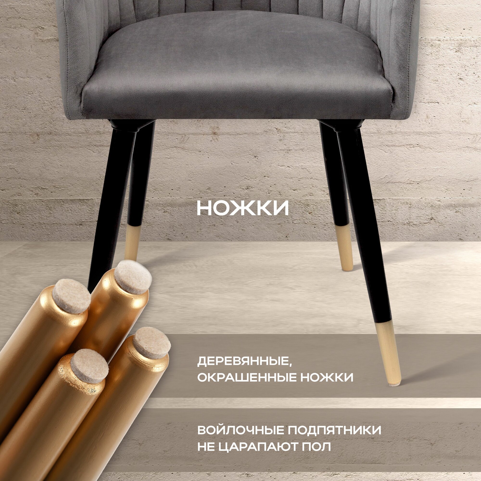 Стулья для кухни Босс мягкие со спинкой, ножки дерево, темно-серый вельвет, 2 штуки, АМИ мебель, РБ интересное: