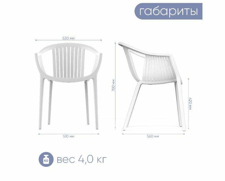 Стулья ЦМ Escalate 4, пластиковые, белые, с подлокотниками, 4 шт