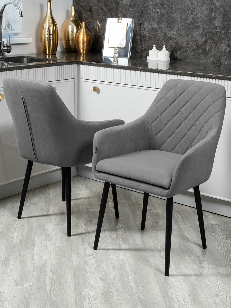 Комплект стульев с поворотным механизмом 360 градусов Ар-Деко для кухни серый, стулья кухонные 2 штуки