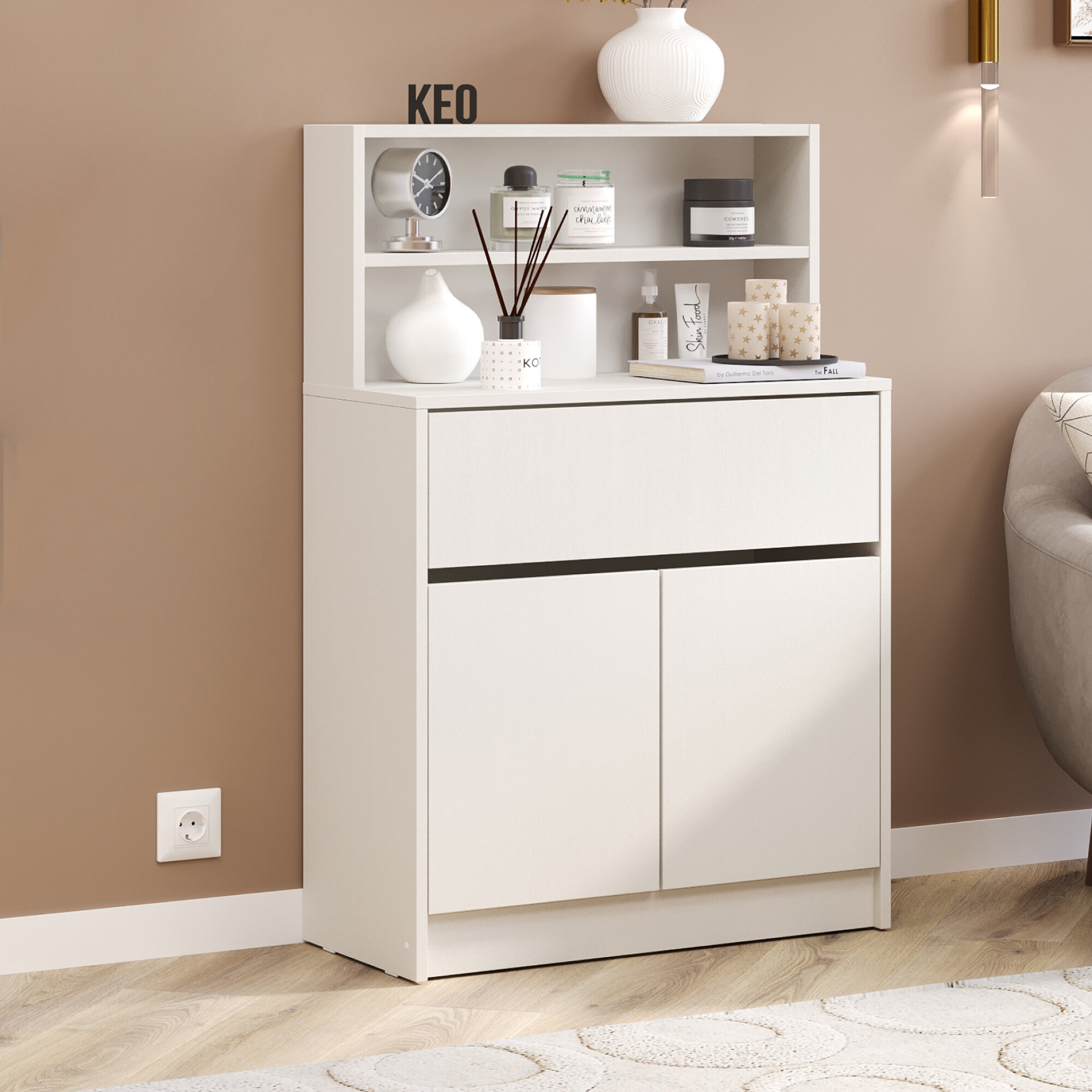 Комод с открытыми полками Кео ТБ-150 белый 110х74х33 см с ящиком