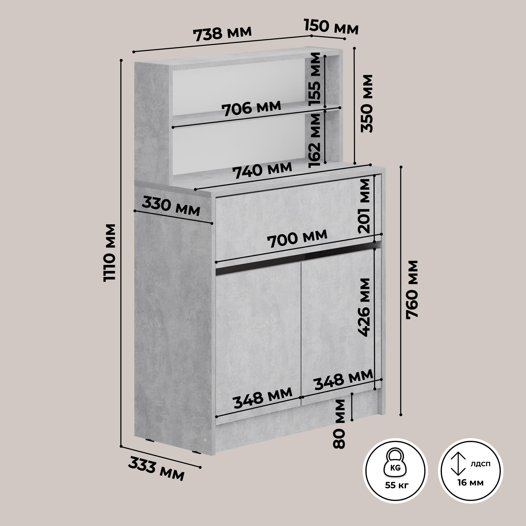 СохранитьКомод Кео ТБ-150 бетон, 110х74х33 см интересное: