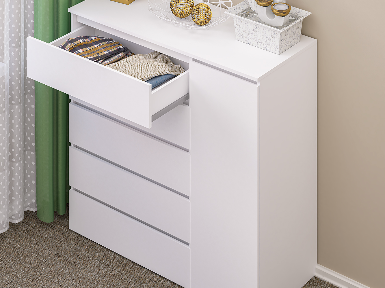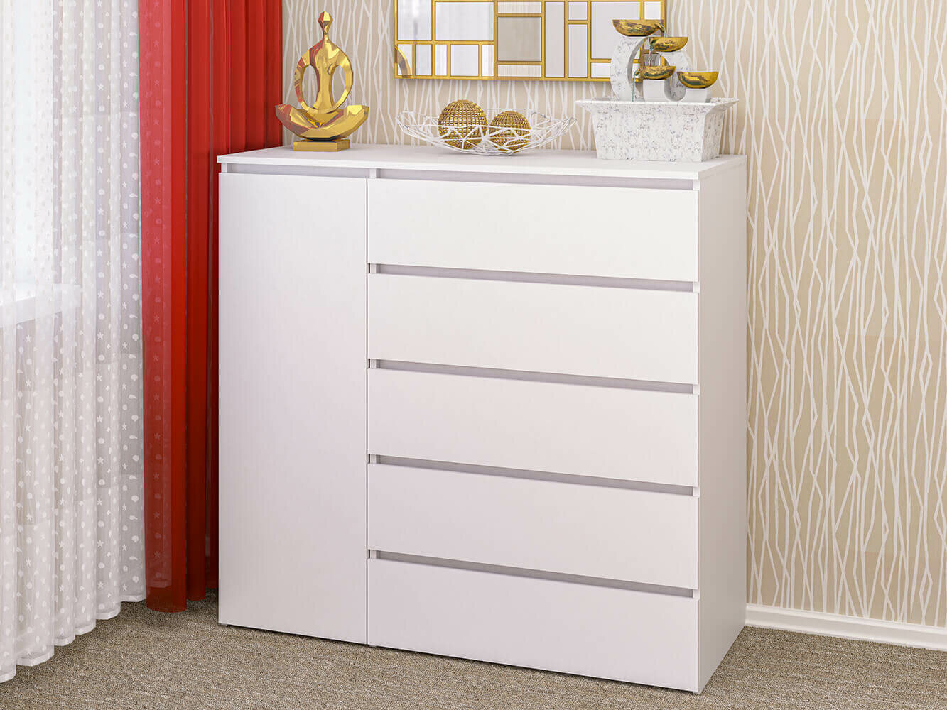 Комод с ящиками и дверцей К-22, Белый 5 ящ., 120х48x115 см, Пирамида интересное:
