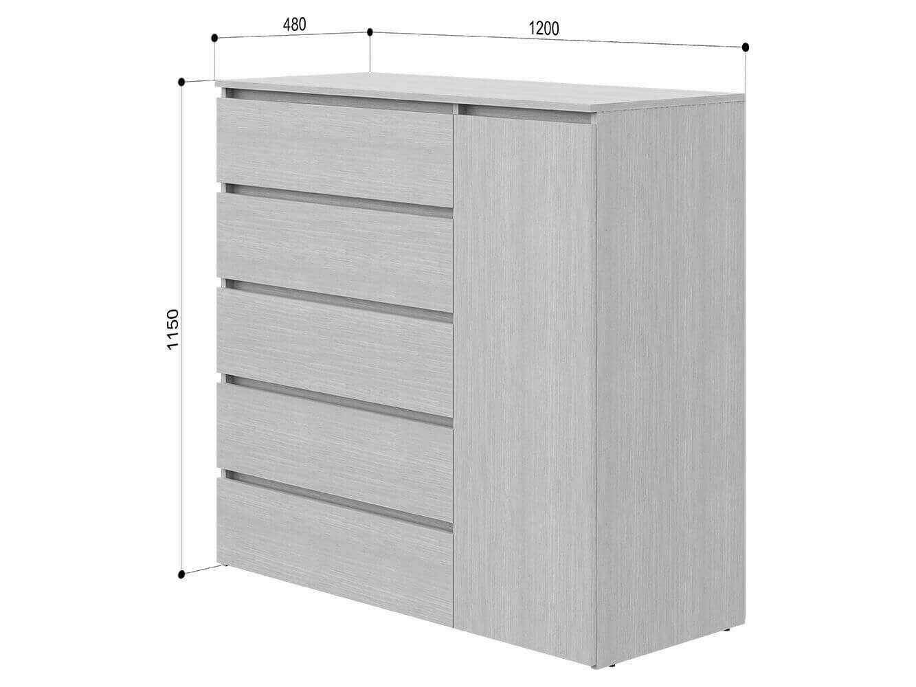 Комод с 5 ящиками и дверцей К-22 Крафт светлый 115х120х48