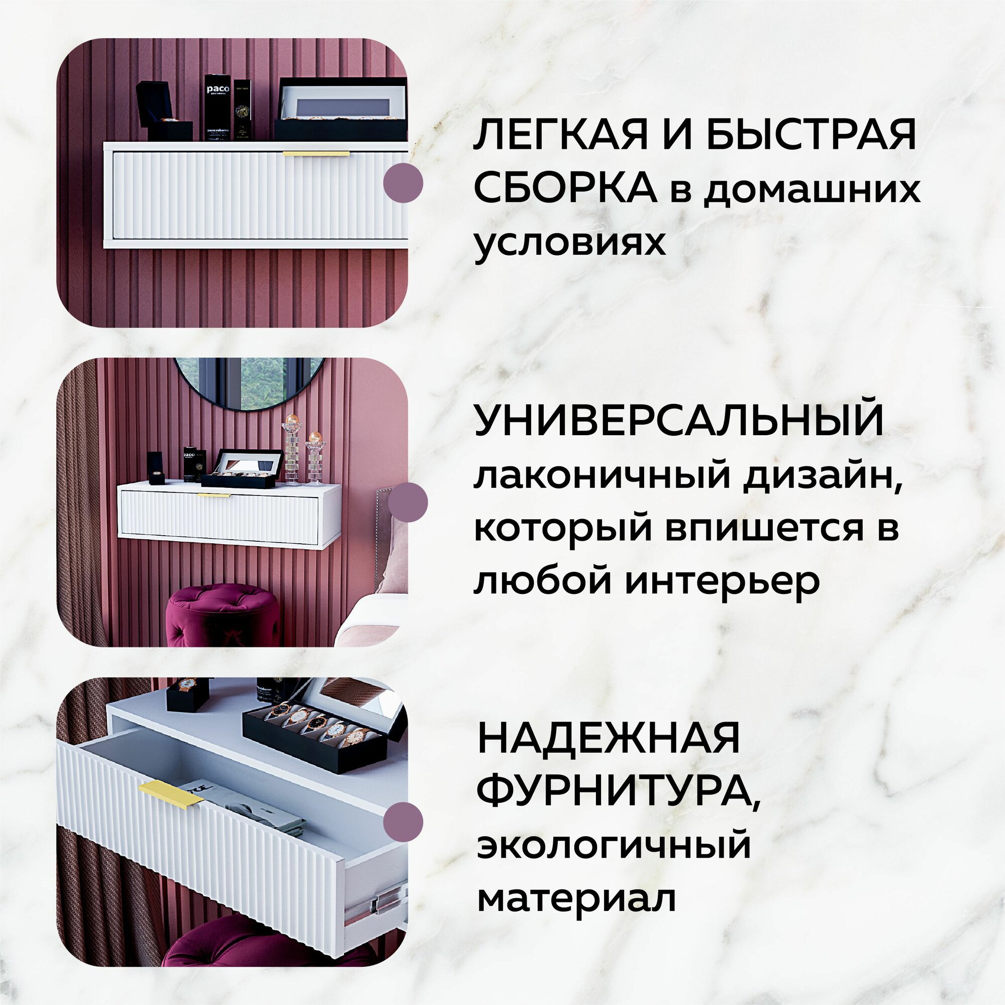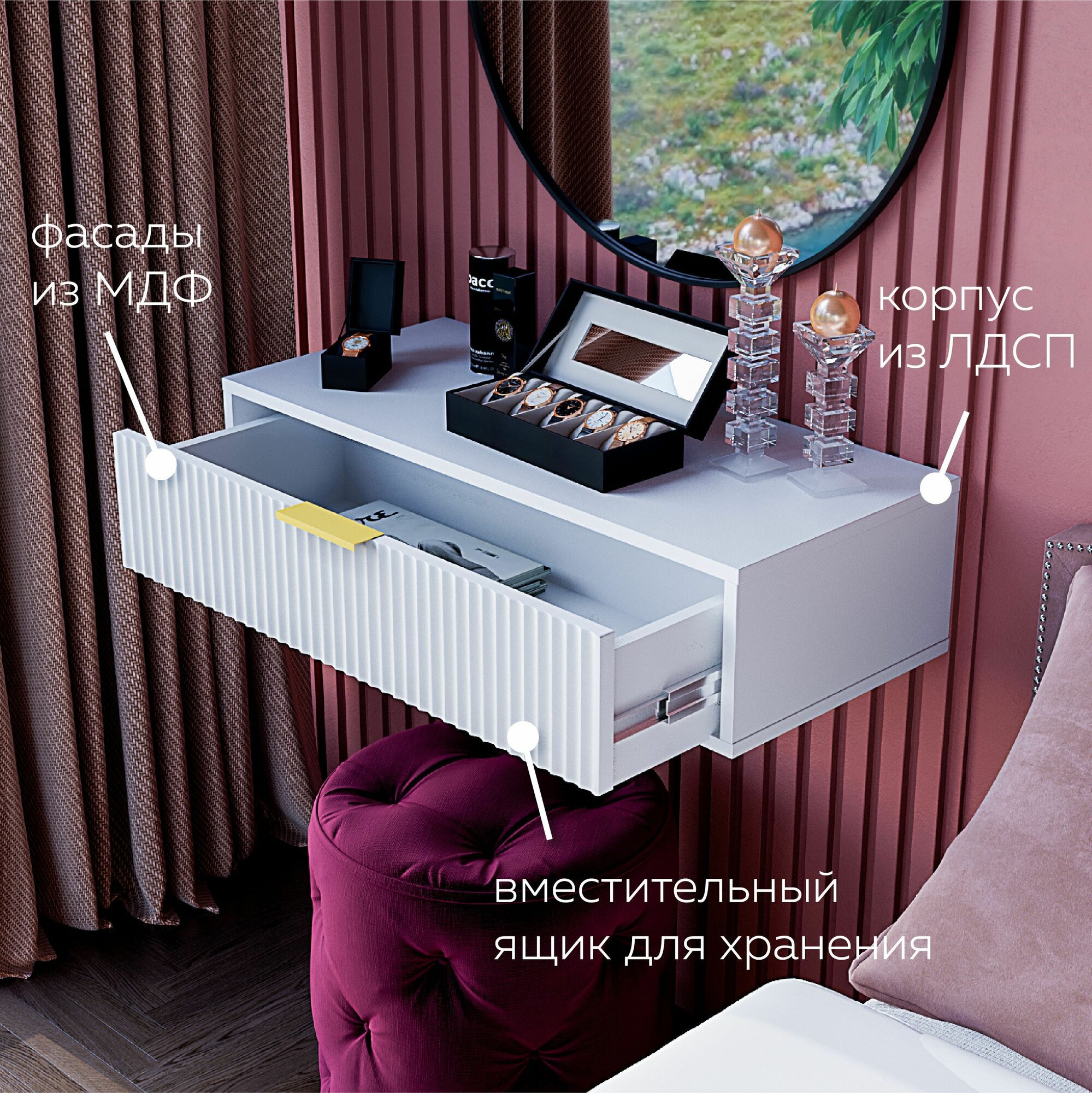 Тумба прикроватная подвесная "Гранд - Волна", туалетный столик для маникюра с ящиком, консоль, 80х37х20 см интересное: