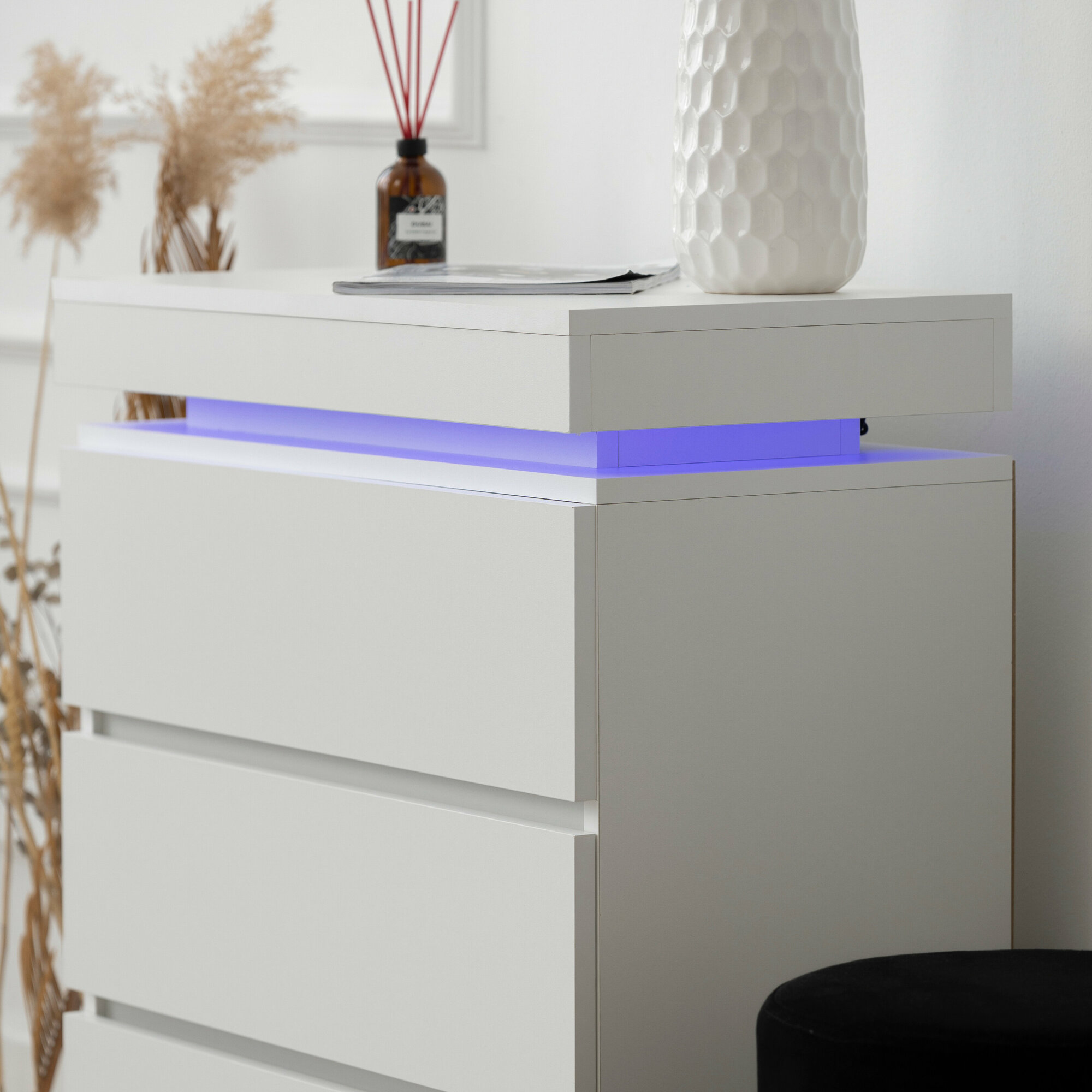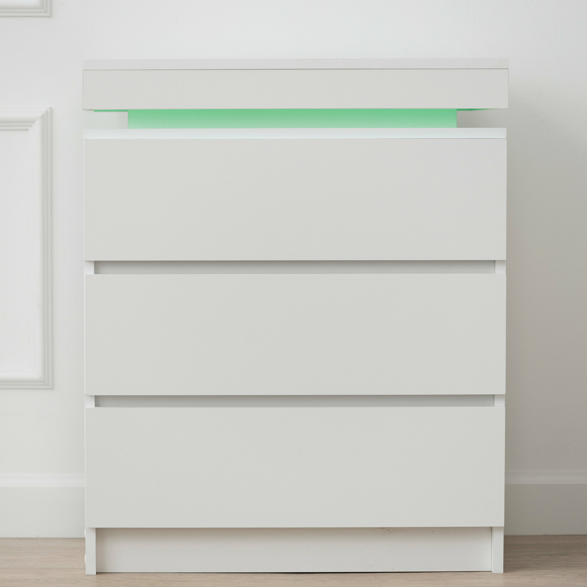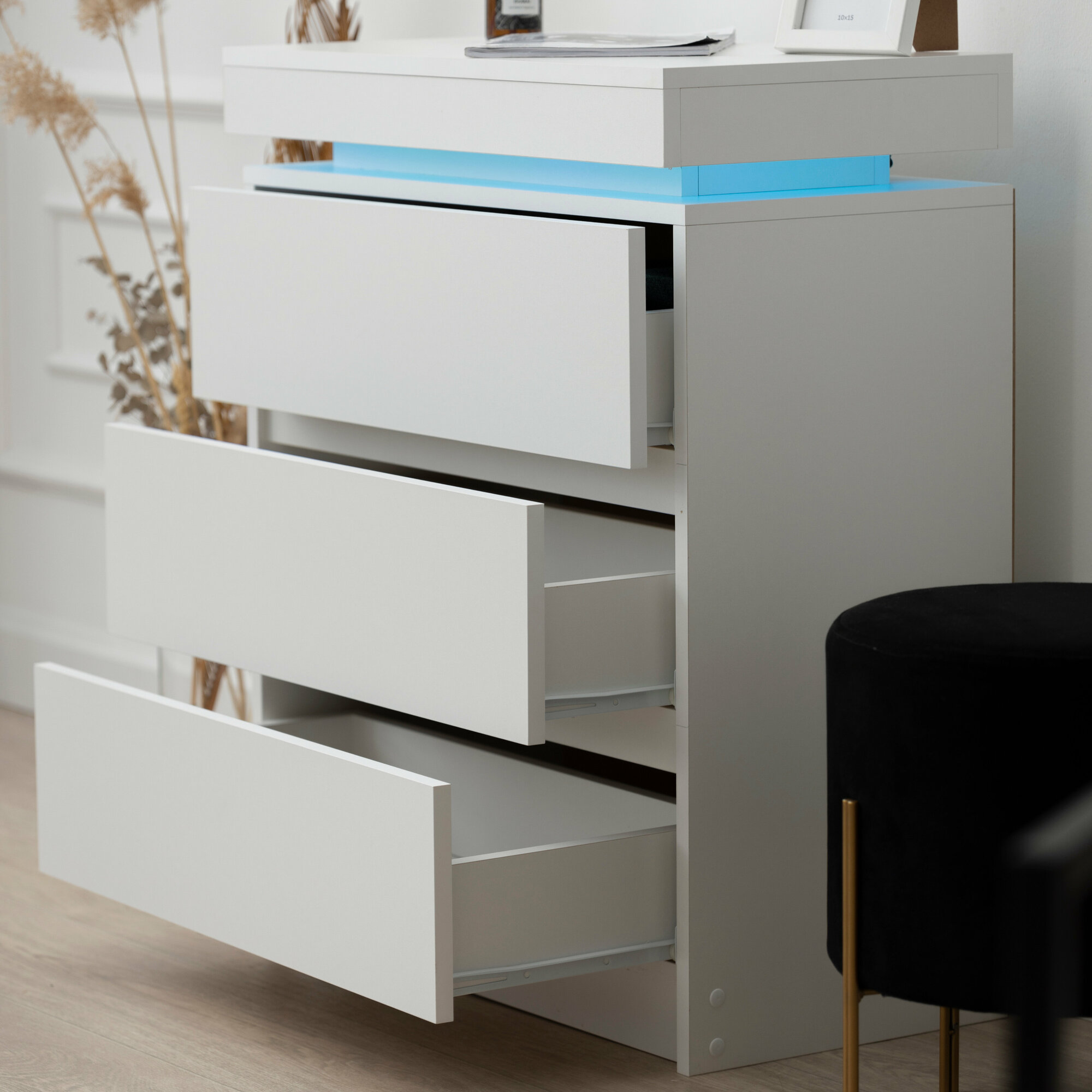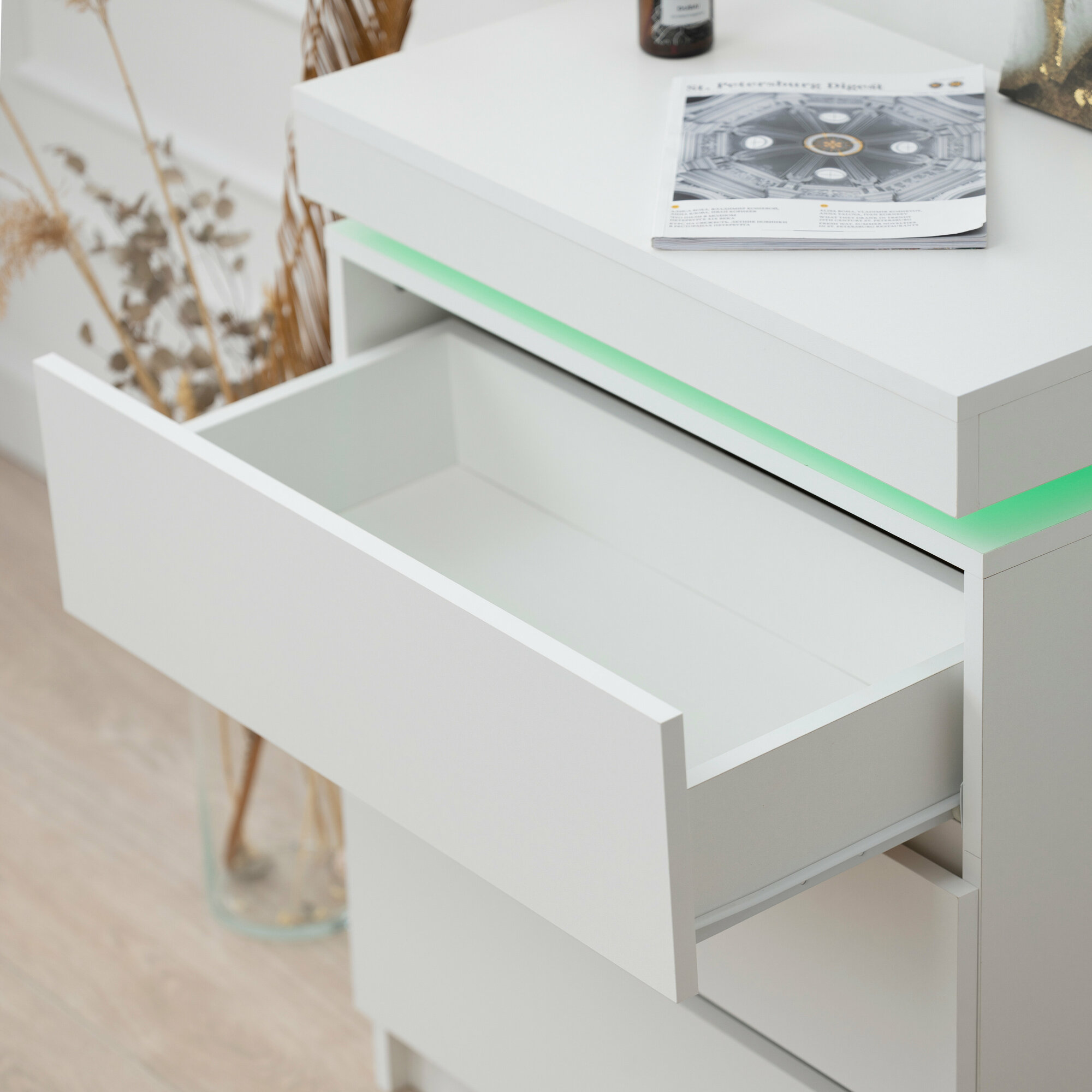 Комод с ящиками для хранения одежды, деревянный с подсветкой в стиле лофт, белый 65х35х80 см интересное:
