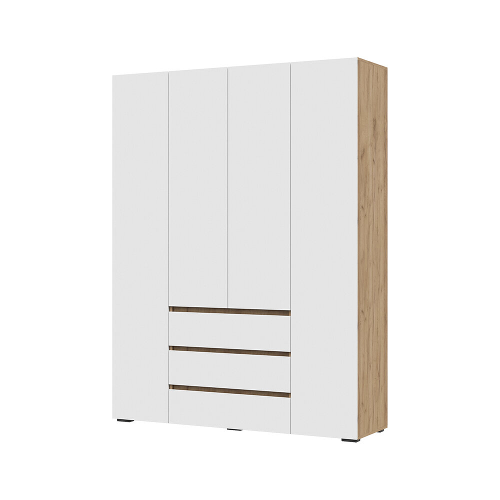 Шкаф для одежды четырех створчатый с ящиками и штангой Хелен ШК-05 белый дуб крафт золотой