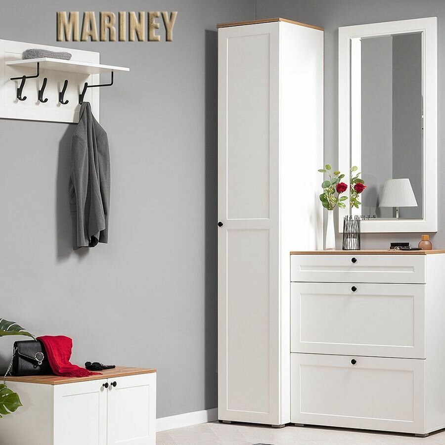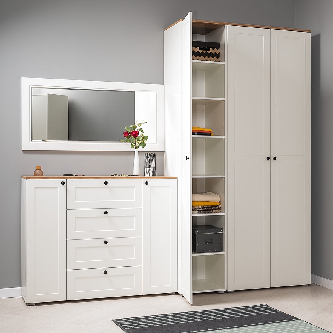 Шкаф для одежды распашной Нонтон Луас, 120 см, 7 полок и штанга, белый глянец