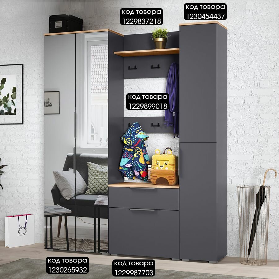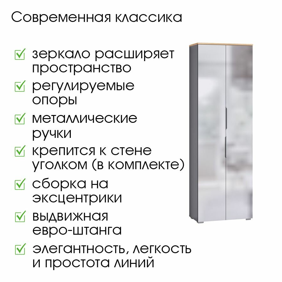 | Особенности | модульный, с зеркалом, штанга для вешалок |