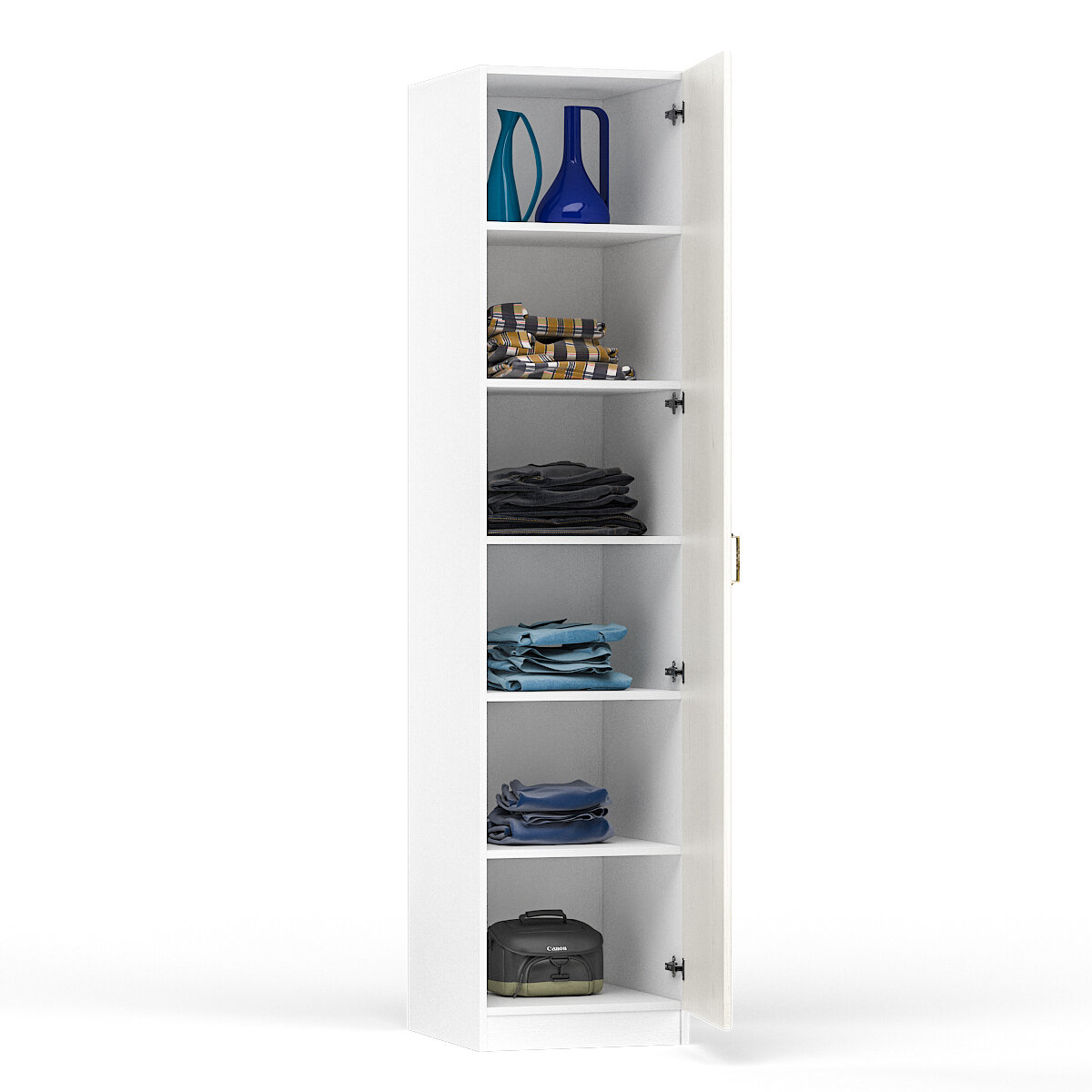 Шкаф для одежды распашной Нонтон Луас, 120 см, 7 полок и штанга, белый глянец