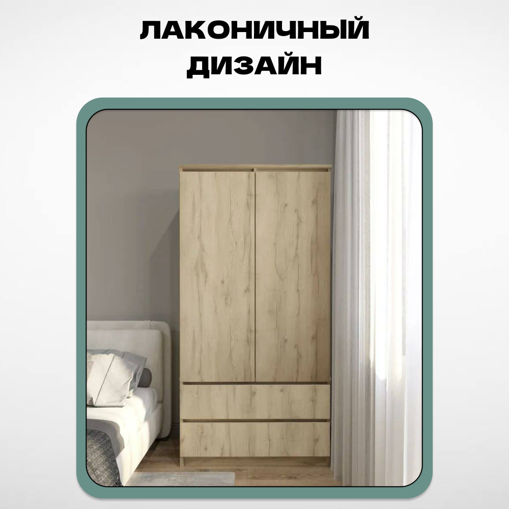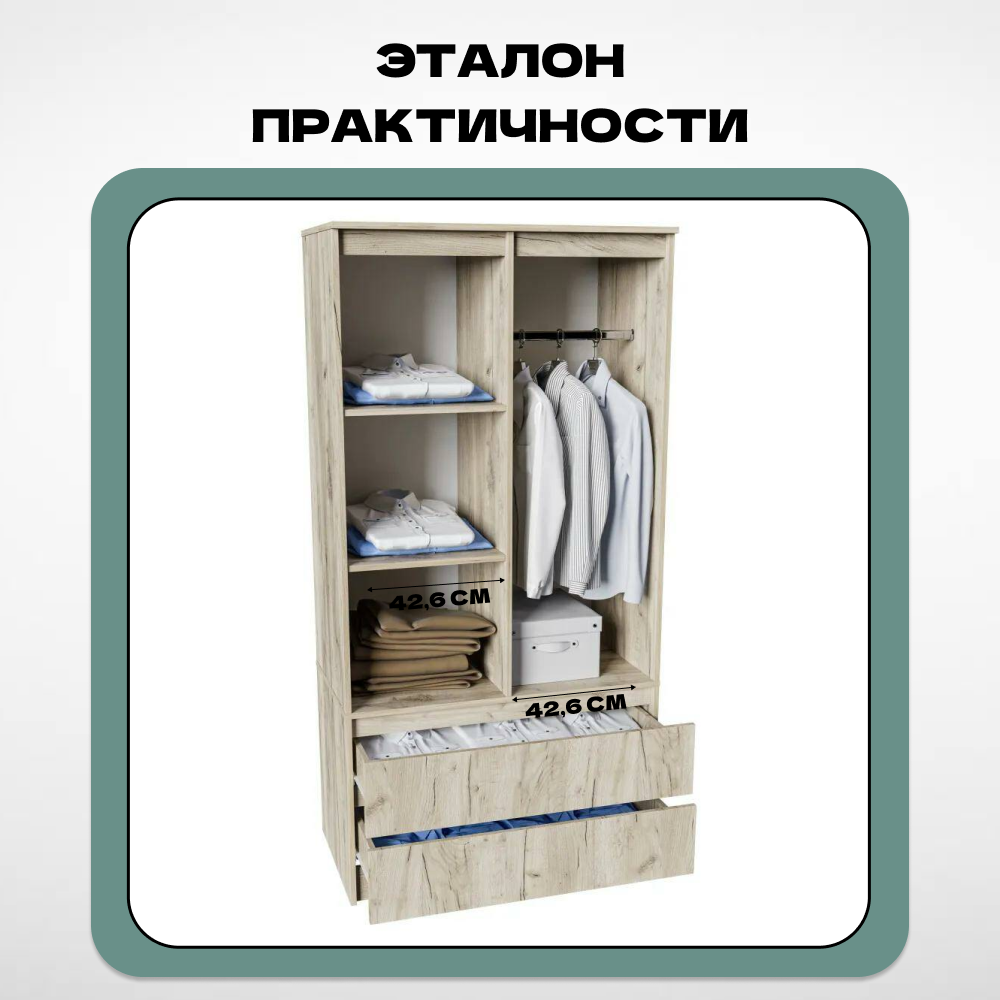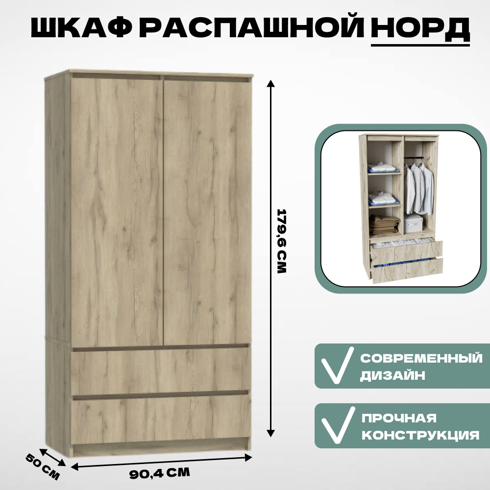 Шкаф для одежды 2-х створчатый Nord 90 см, дуб крафт серый интересное: