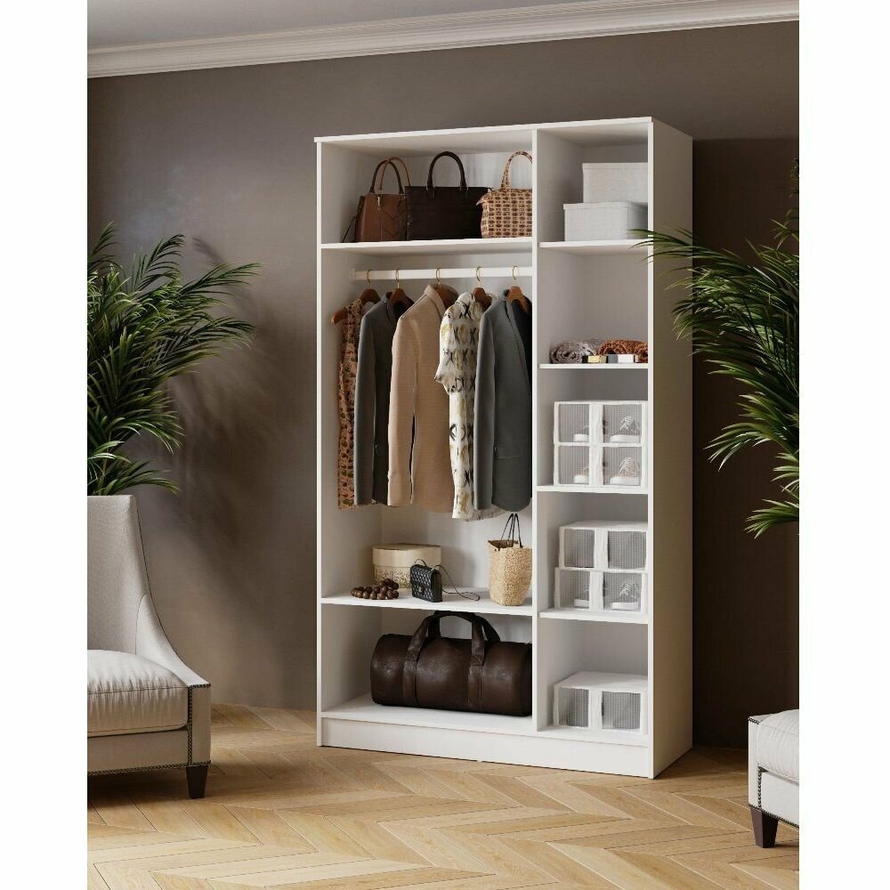 Шкаф для одежды распашной Нонтон Луас, 120 см, 7 полок и штанга, белый глянец