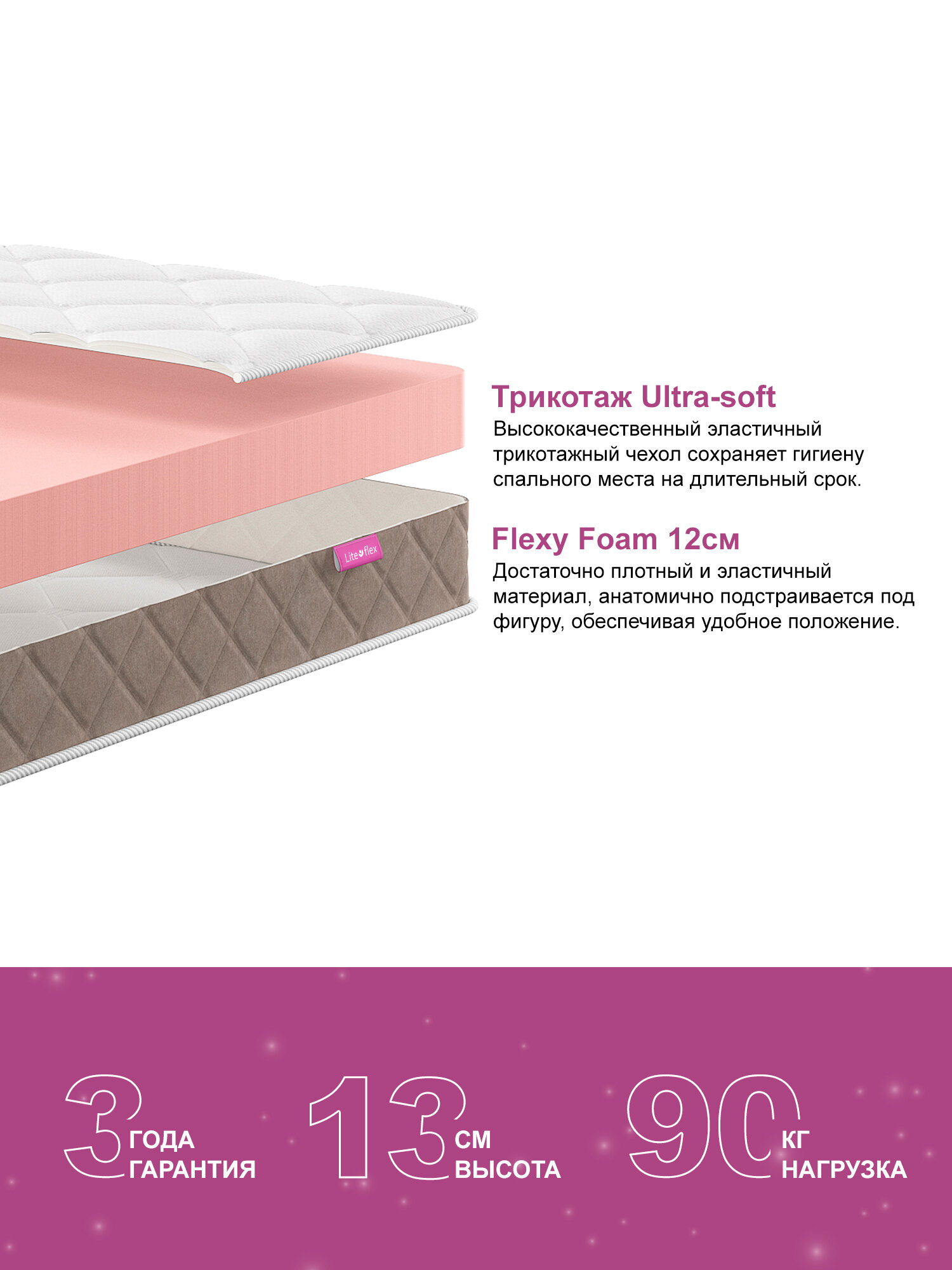 Матрас 140х190 двухсторонний анатомический на кровать Lite Flex White
