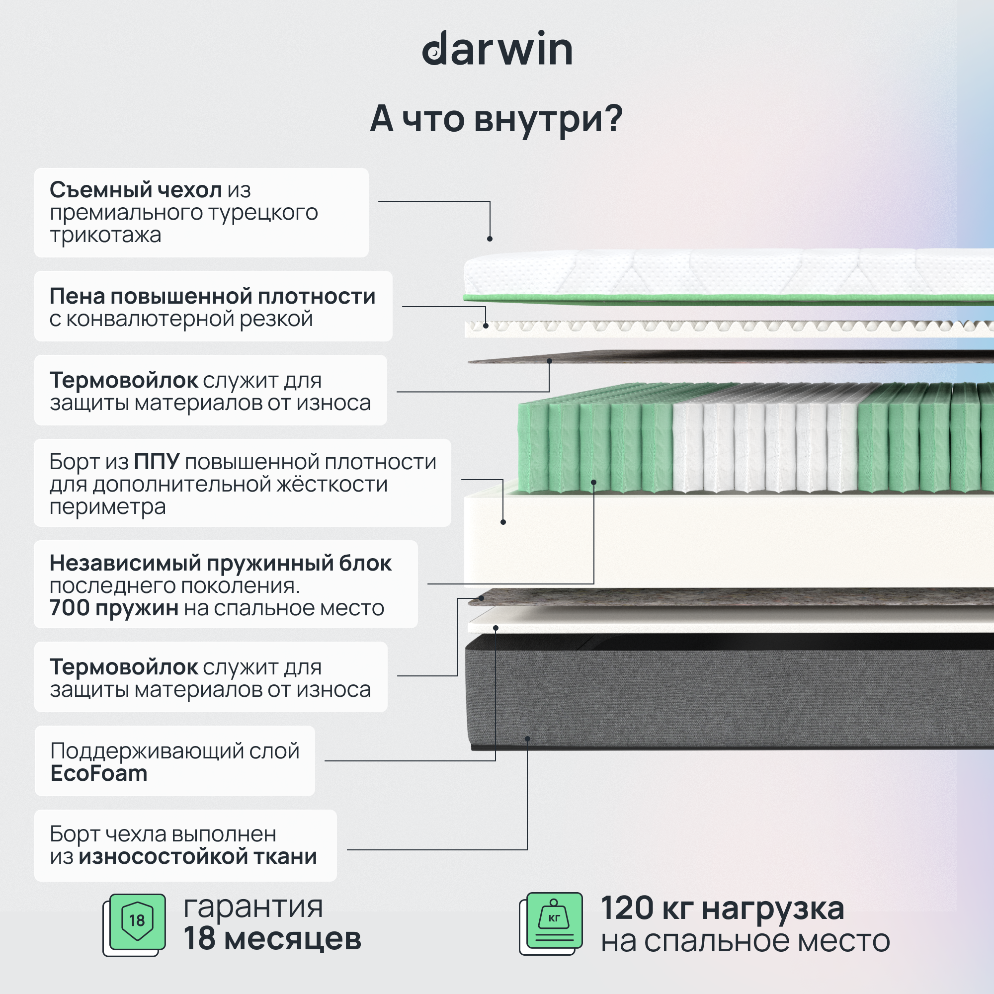 СохранитьОртопедический пружинный матрас Darwin Perfect 160х190, независимые пружины, высота 24 см интересное:
