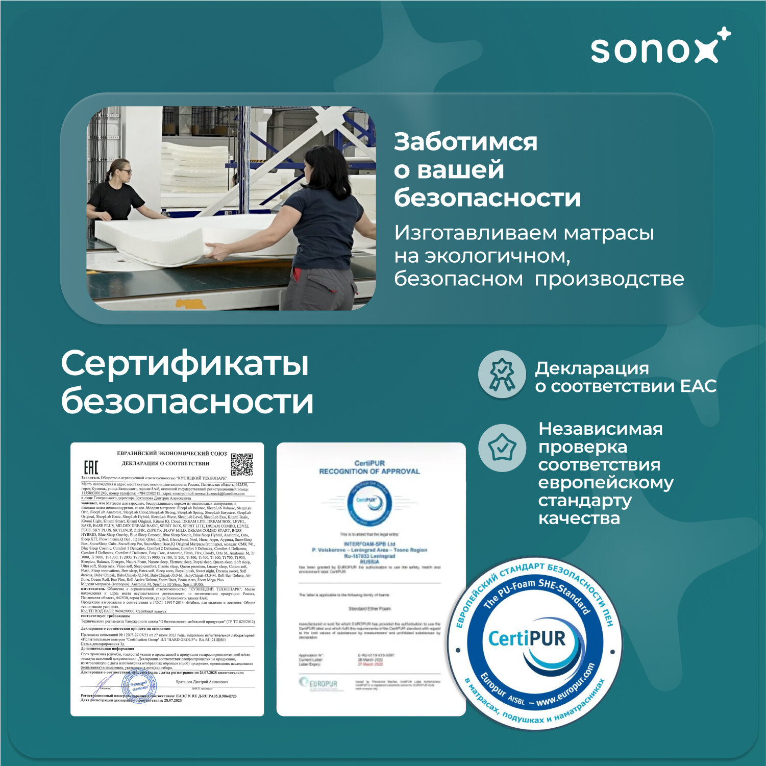 Матрас двусторонний SONOX со съёмным чехлом 90х200 см, беспружинный, анатомический, 7 зон жёсткости AF90200, эффект независимых пружин