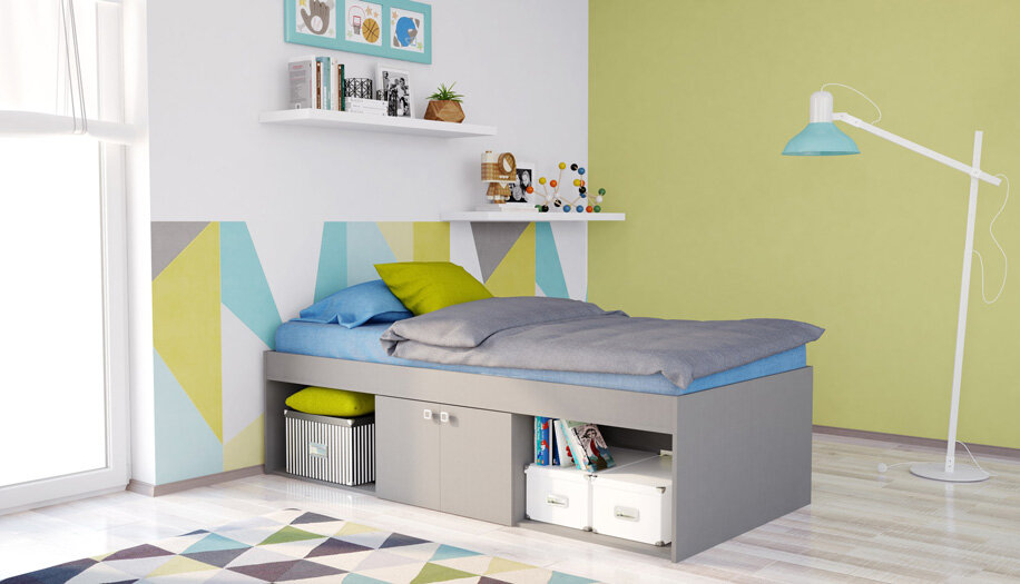 Детская кровать Polini Simple 3000 "с нишами" серого цвета интересное: