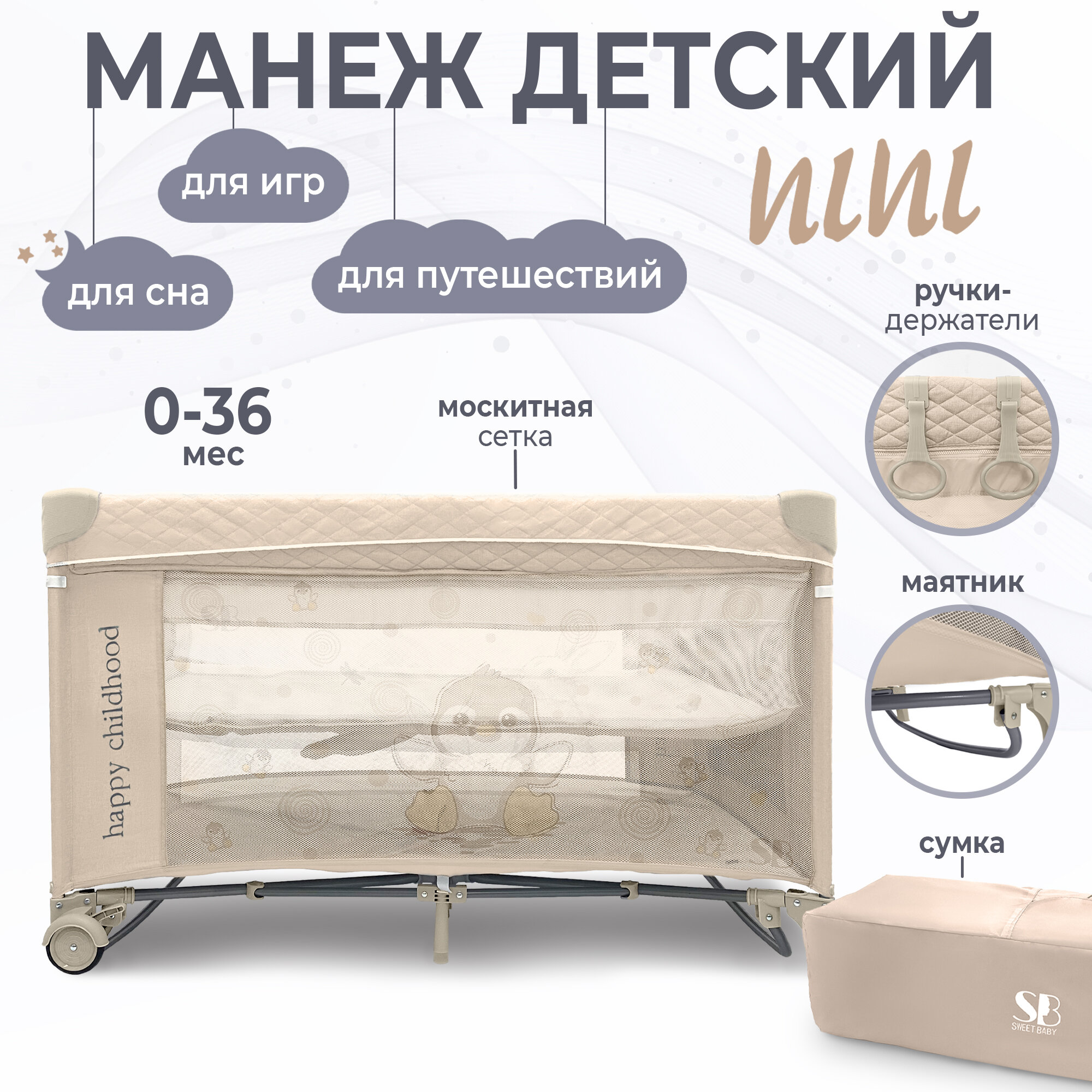 Манеж детский Sweet Baby Nini (Beige Penguin) интересное: