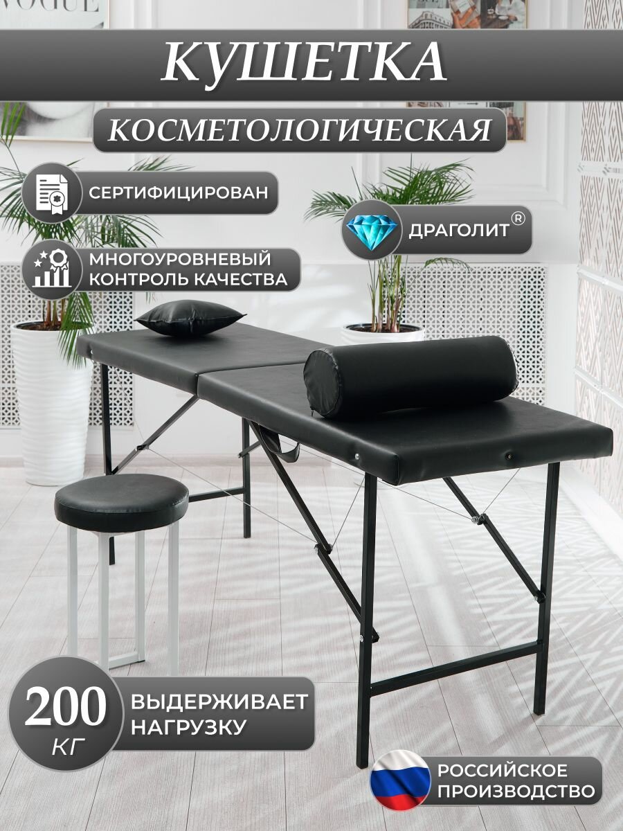 Кушетка косметологическая "Драголит", обивка из искусственной кожи, нагрузка до 200кг, черная