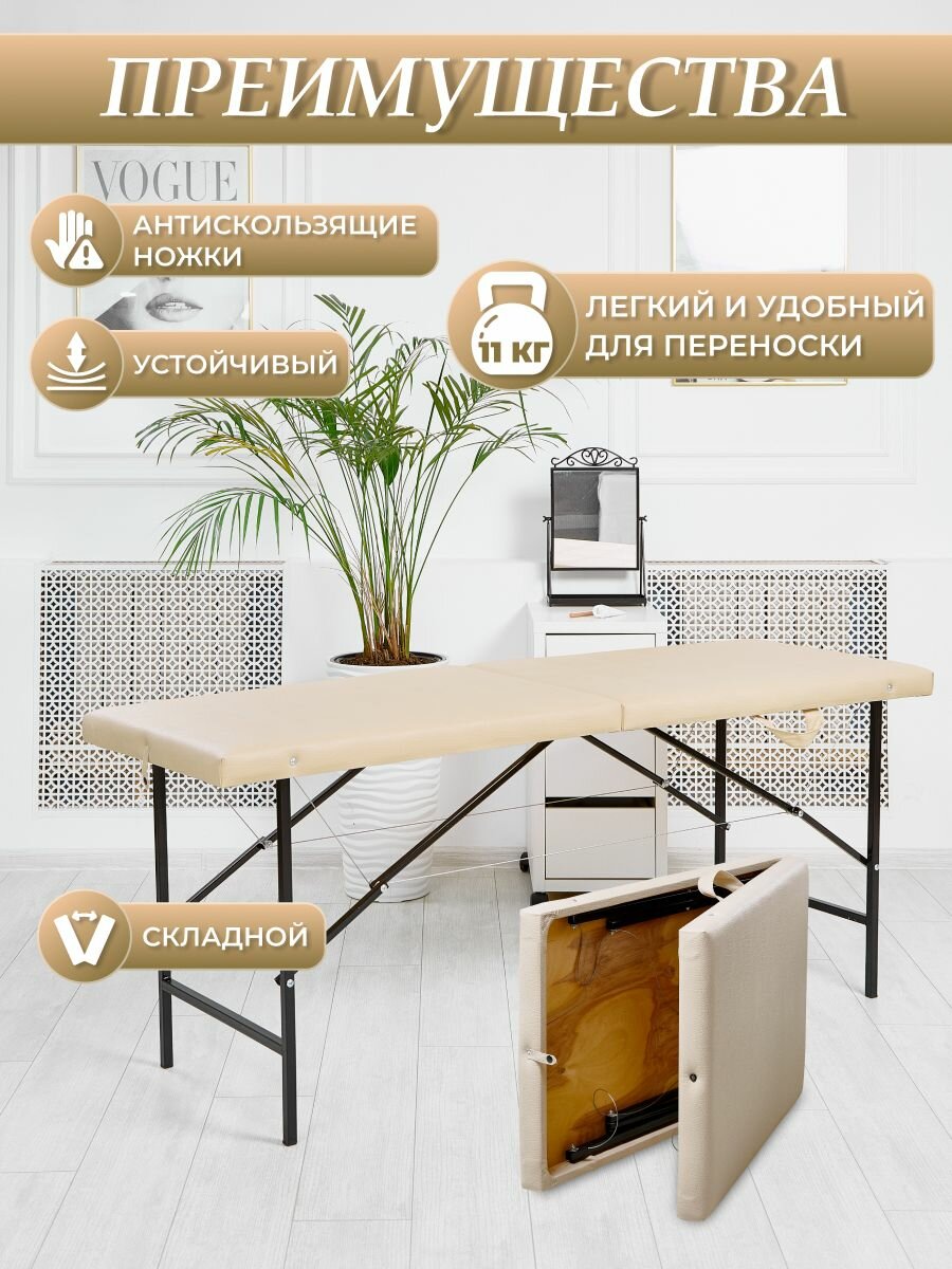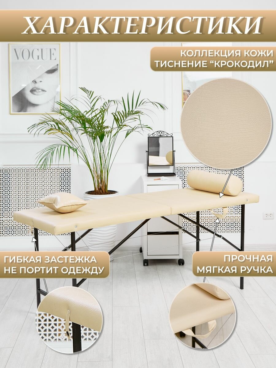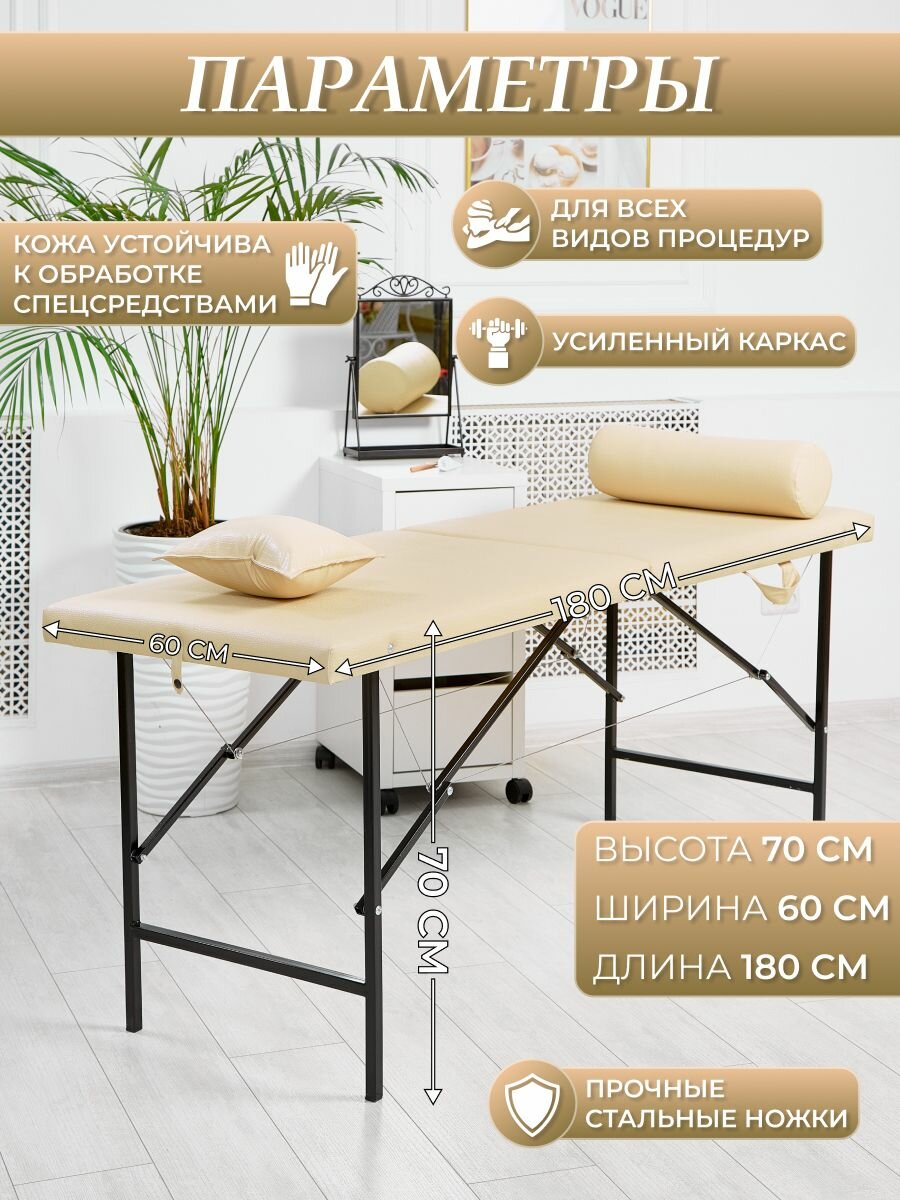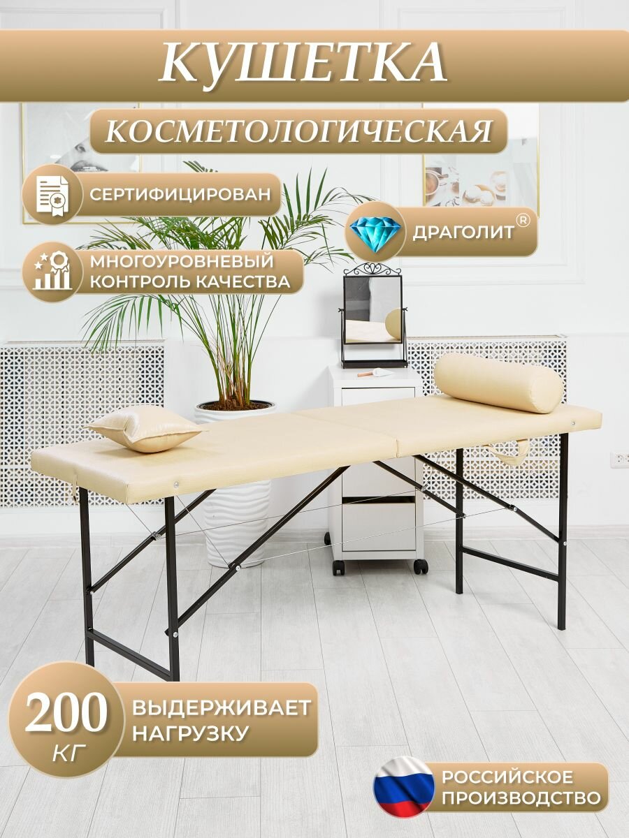 Кушетка косметологическая "Драголит", раскладная, бежевая, искусственная кожа, 60x180х70 см