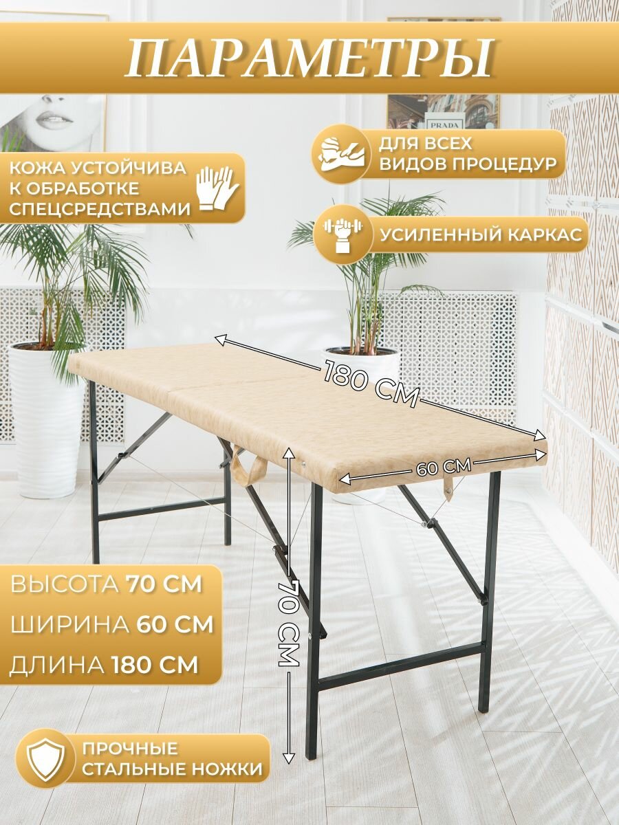 Кушетка косметологическая "Драголит", раскладная, бежевая, искусственная кожа, 60x180х70 см