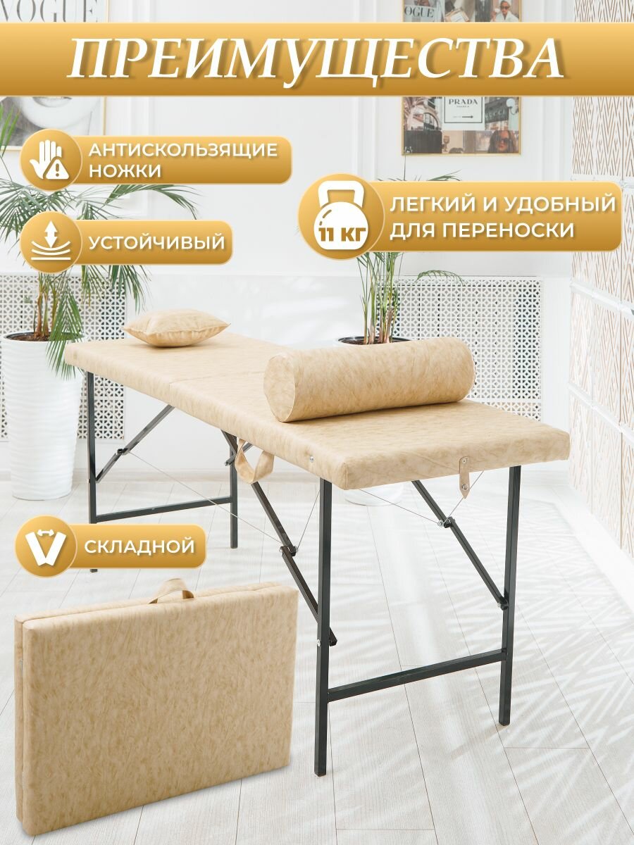 Кушетка косметологическая "Драголит", мрамор бежевый, раскладной механизм, 60х180х70 см