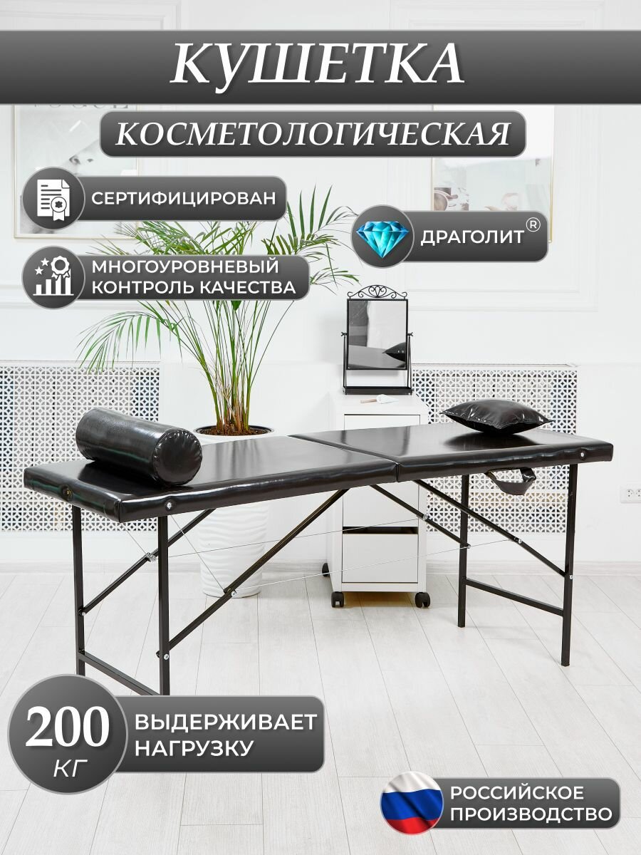 Кушетка косметологическая "Драголит", обивка из искусственной кожи, нагрузка до 200кг, черная