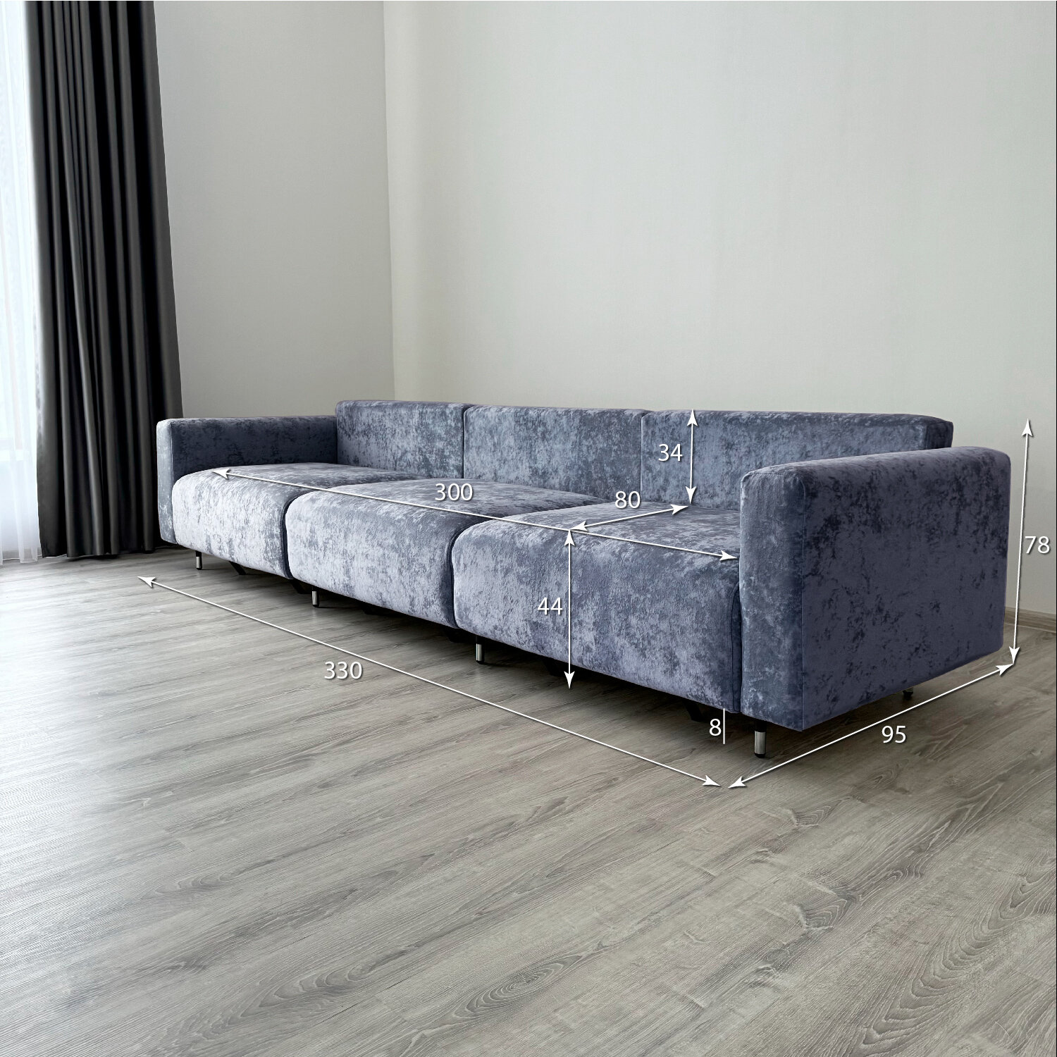Диван-кровать Redsofa Монблан 330см серебристый Ocean. Раскладной прямой диван со съемными чехлами Редсофа, для дома и офиса