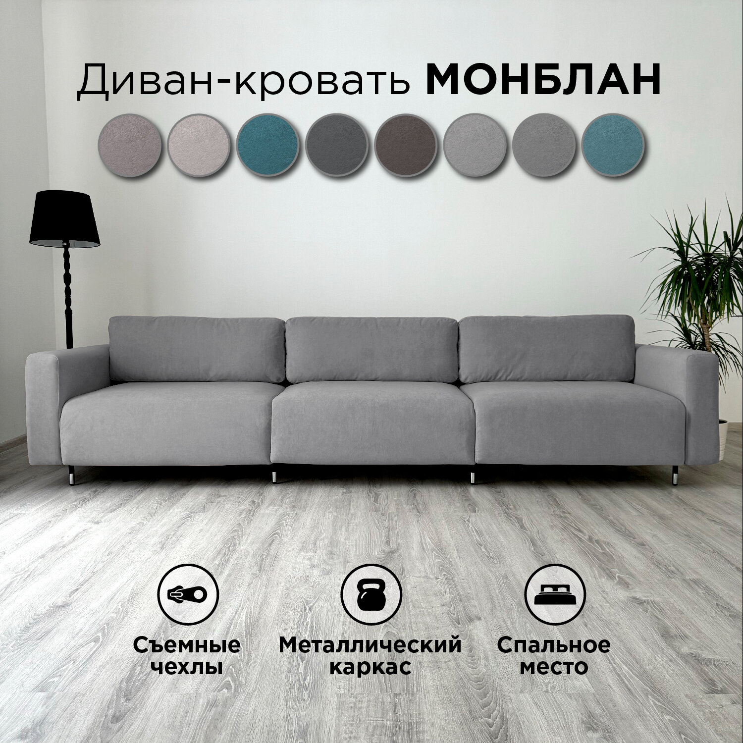 СохранитьДиван-кровать Redsofa Монблан 330см серый Teddi. Раскладной прямой диван со съемными чехлами Редсофа, для дома и офиса интересное: