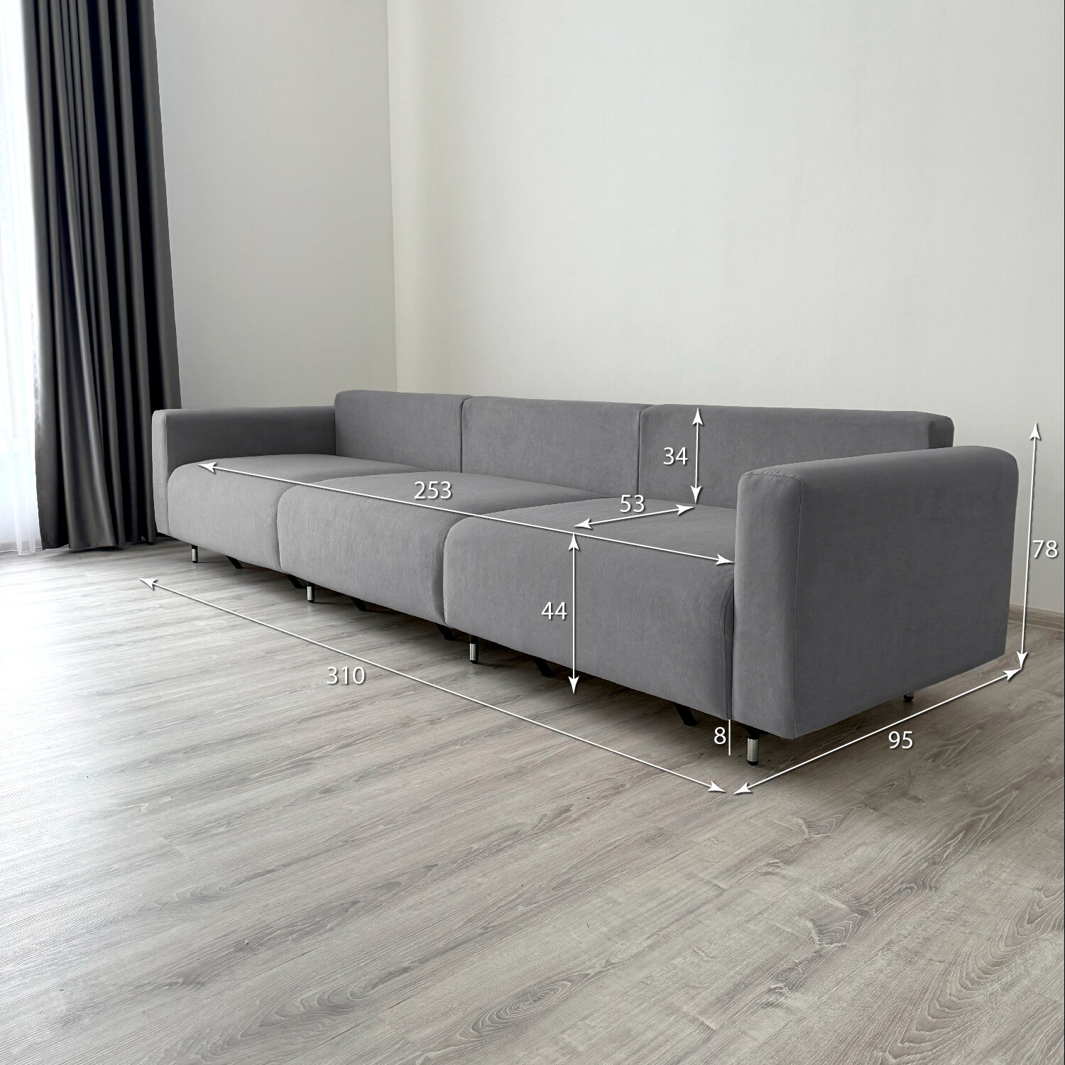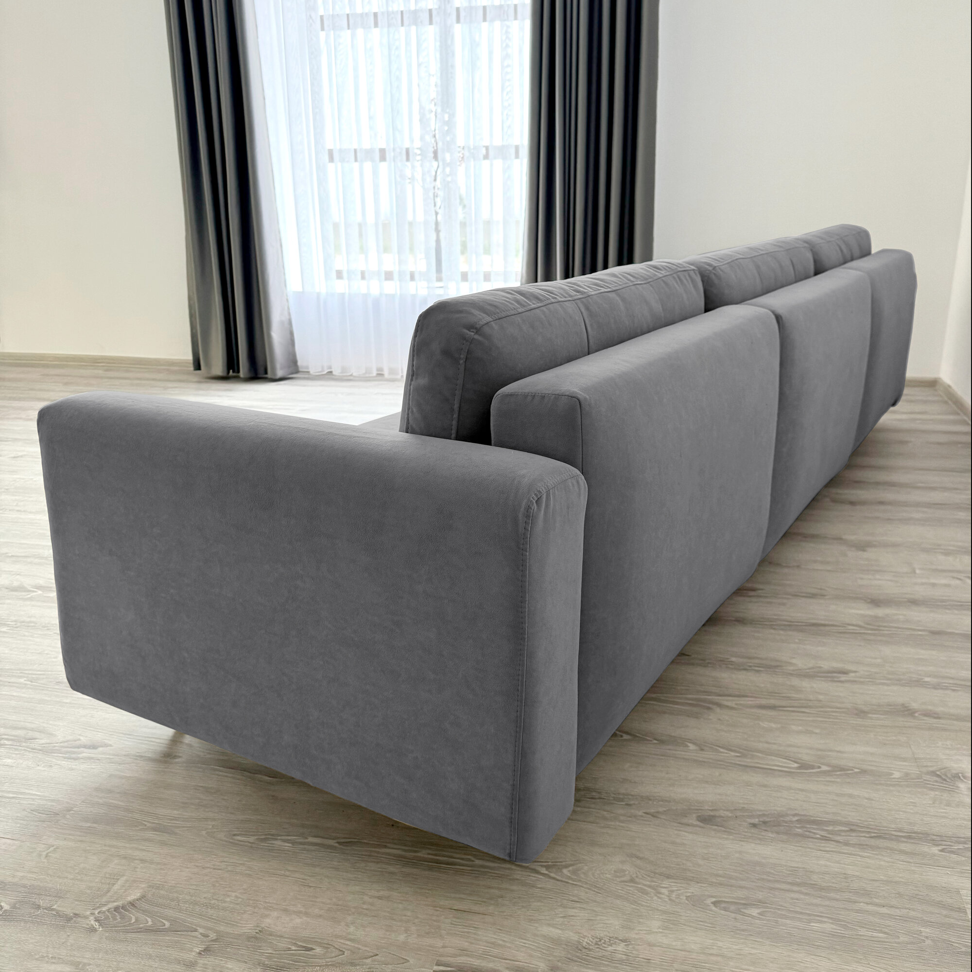 Диван-кровать Redsofa Монблан 330см серый Ocean. Раскладной прямой диван со съемными чехлами Редсофа, для дома и офиса