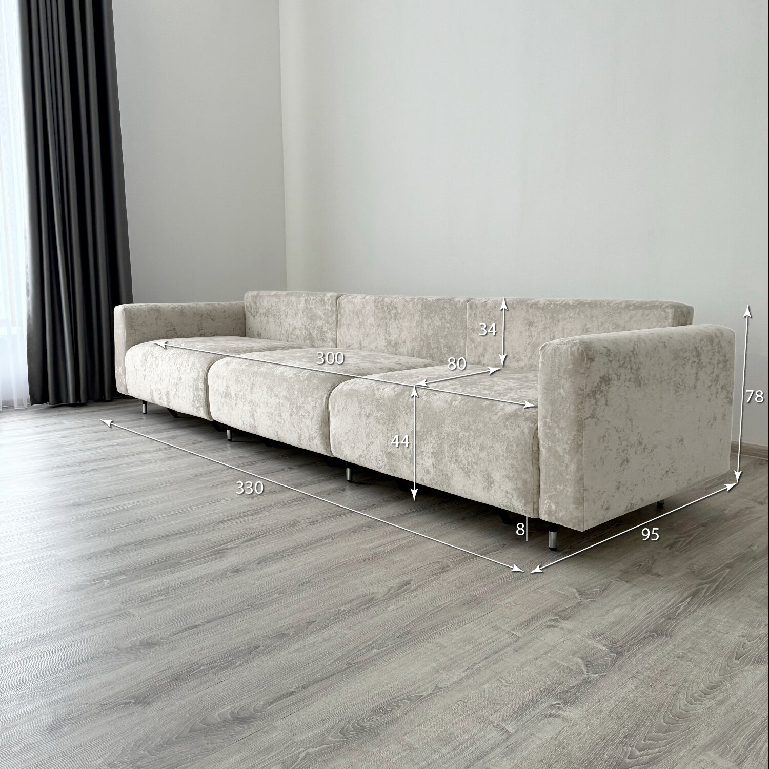 СохранитьДиван-кровать Redsofa Монблан 330см светло-бежевый Ocean. Раскладной прямой диван со съемными чехлами Редсофа, для дома и офиса интересное: