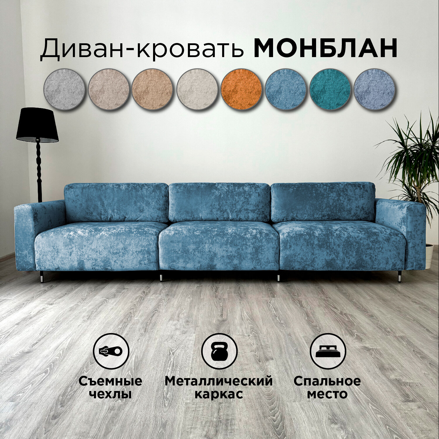 СохранитьДиван-кровать Redsofa Монблан 330см голубой Ocean. Раскладной прямой диван со съемными чехлами Редсофа, для дома и офиса интересное: