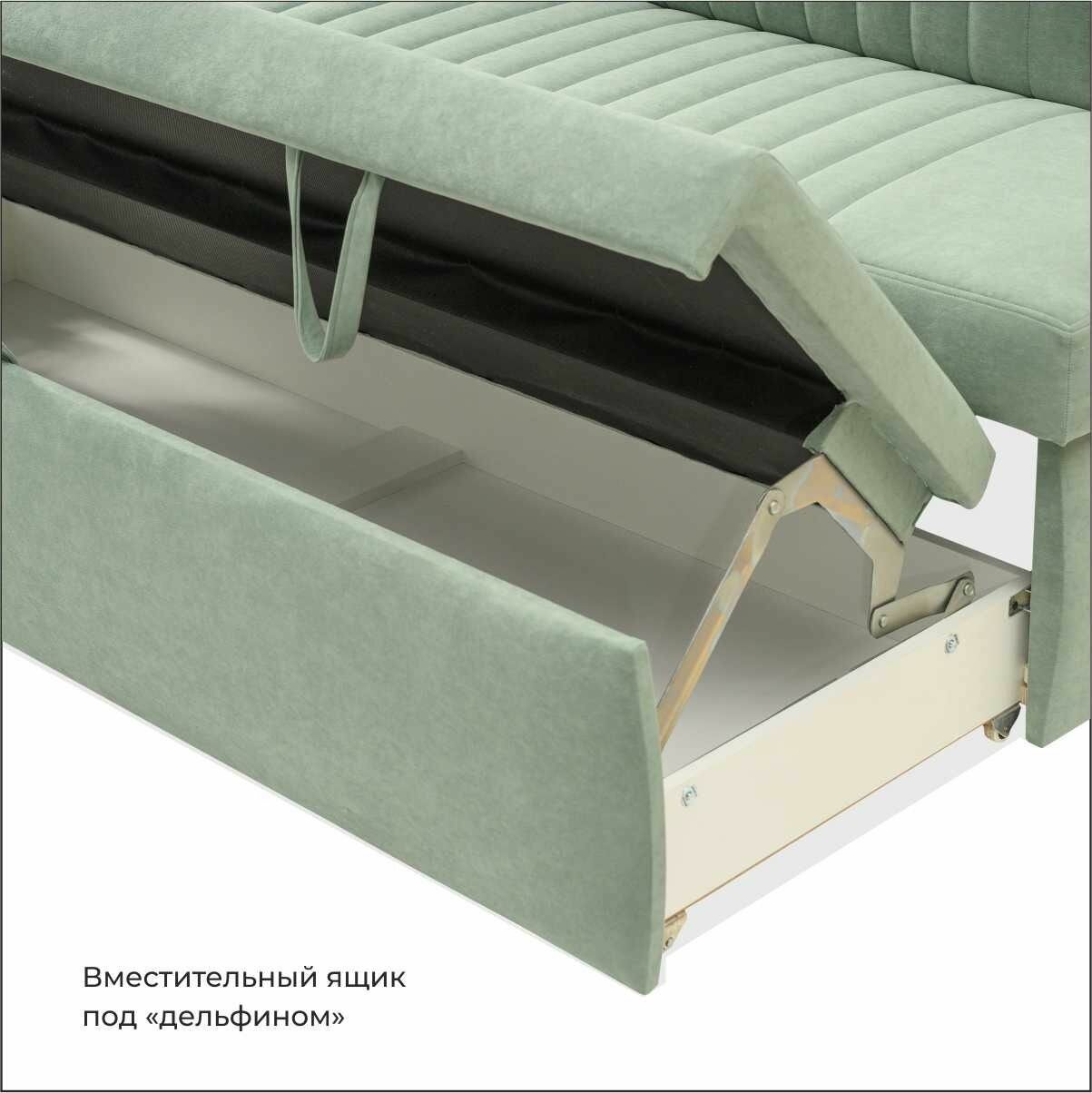 Страйп 183х64х83 см. Мелисса 17, светло-зеленый прямой раскладной диван со спальным местом, Велюр, для дома и офиса