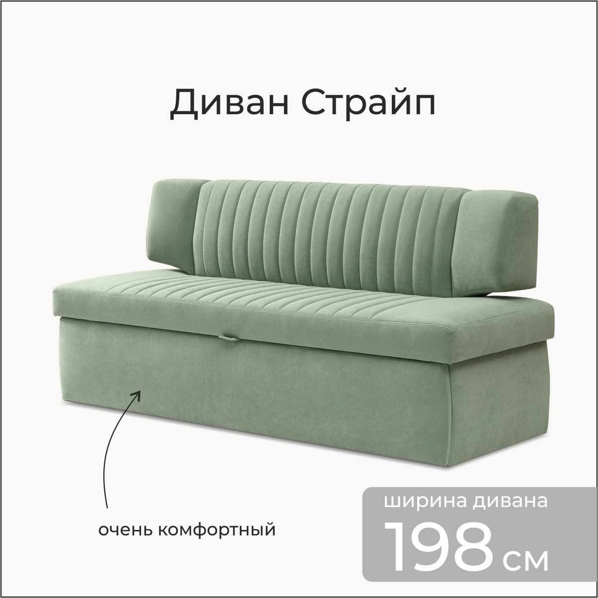 Кухонный раскладной диван Страйп 198х64х83 см. Мелисса 17, Светло-Зеленый, прямой диван со спальным местом, Велюр