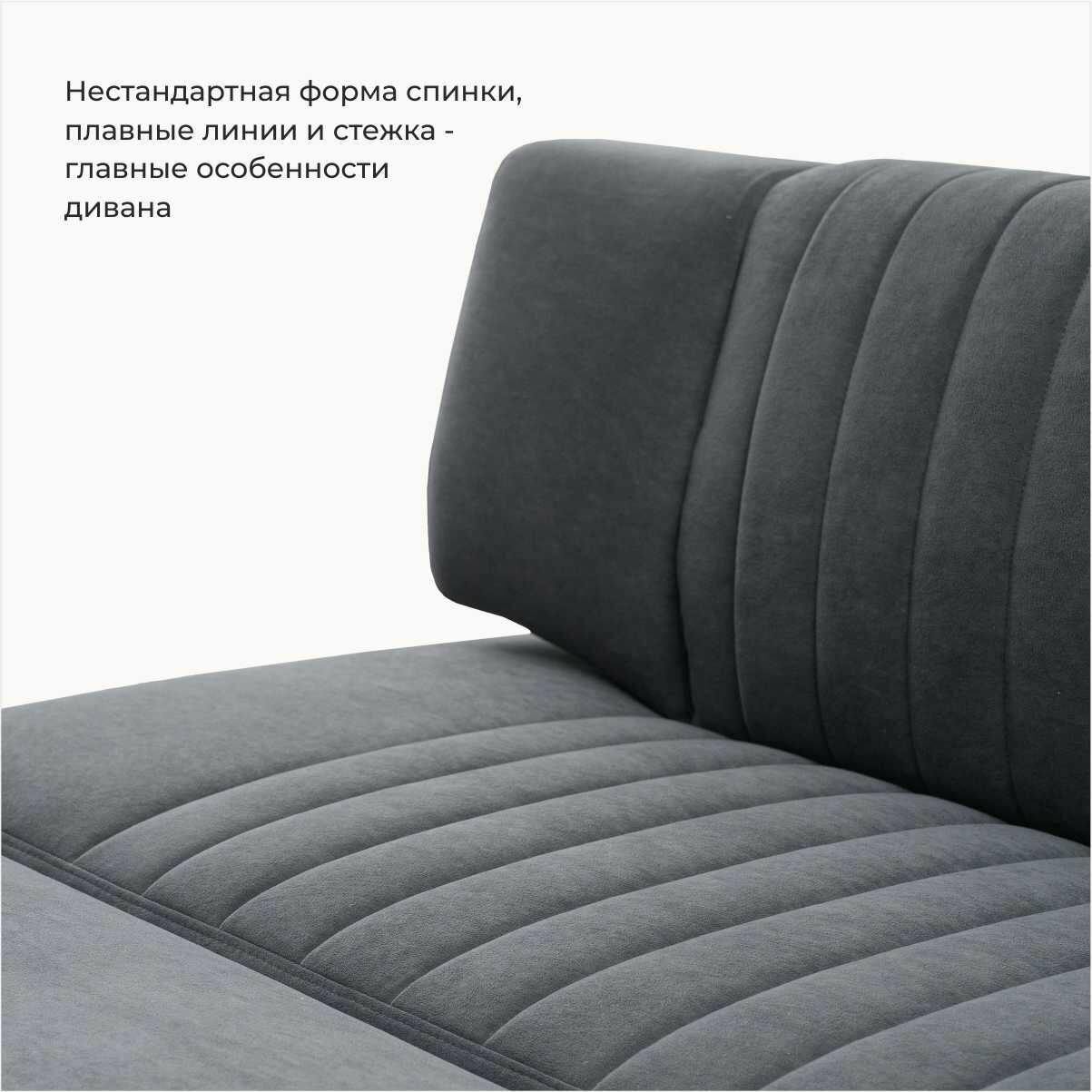 Страйп 183х64х83 см. Мелисса 35, прямой раскладной диван со спальным местом. Темно-графитовый, Велюр, для дома и офиса