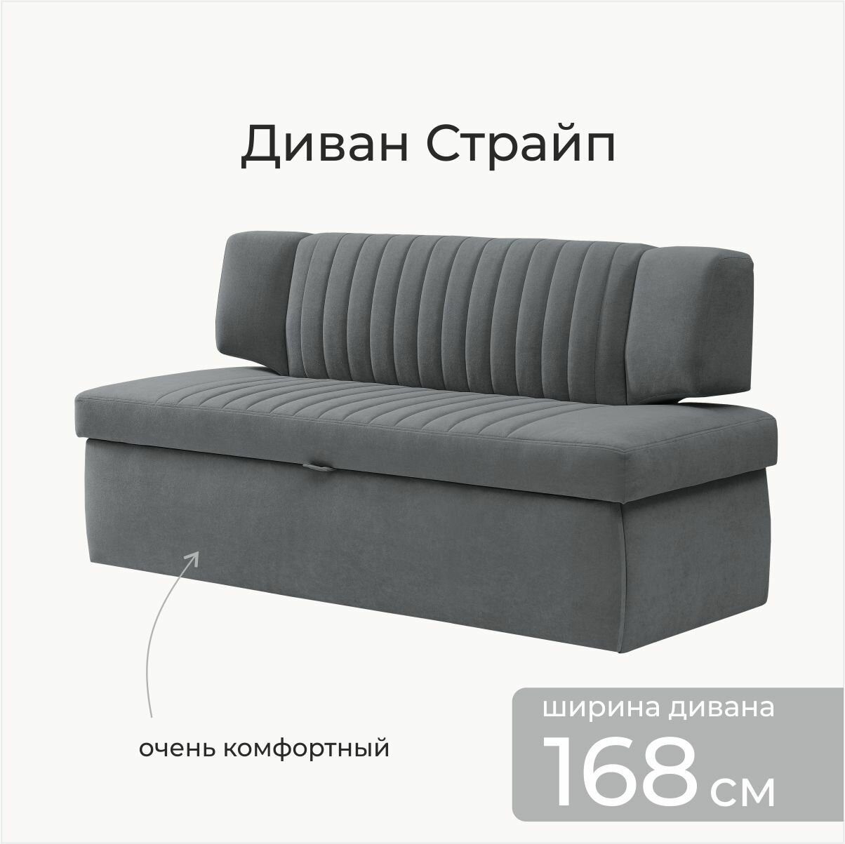 Кухонный раскладной диван Страйп 168х64х83 см. Мелисса 34, Серый, прямой диван со спальным местом, Велюр