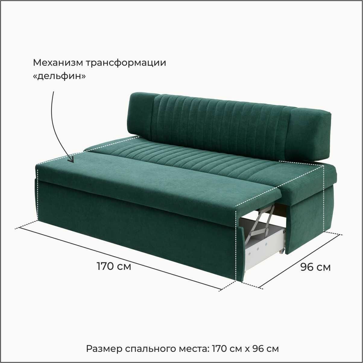 Кухонный раскладной диван Страйп 168х64х83 см. Мелисса 39, прямой диван со спальным местом, Темно-Зеленый, Велюр