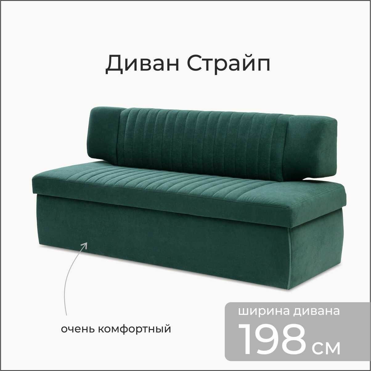 Кухонный раскладной диван Страйп 198х64х83 см. Мелисса 39, прямой диван со спальным местом, Темно-Зеленый, Велюр