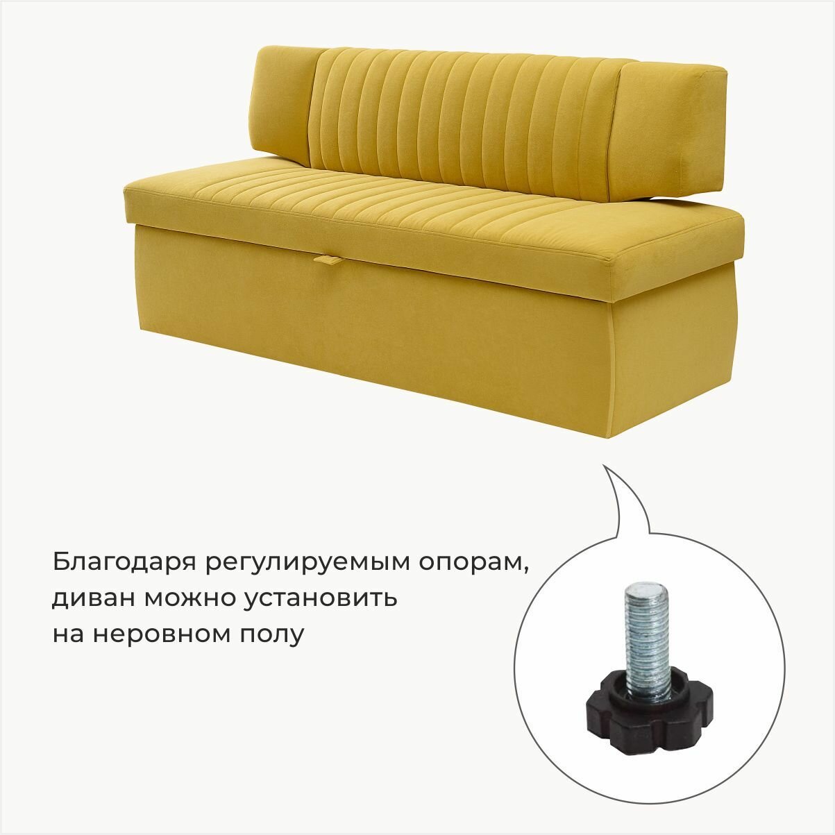 Кухонный раскладной диван Страйп 183х64х83 см. Мелисса 14, прямой диван со спальным местом, Жёлтый, Велюр