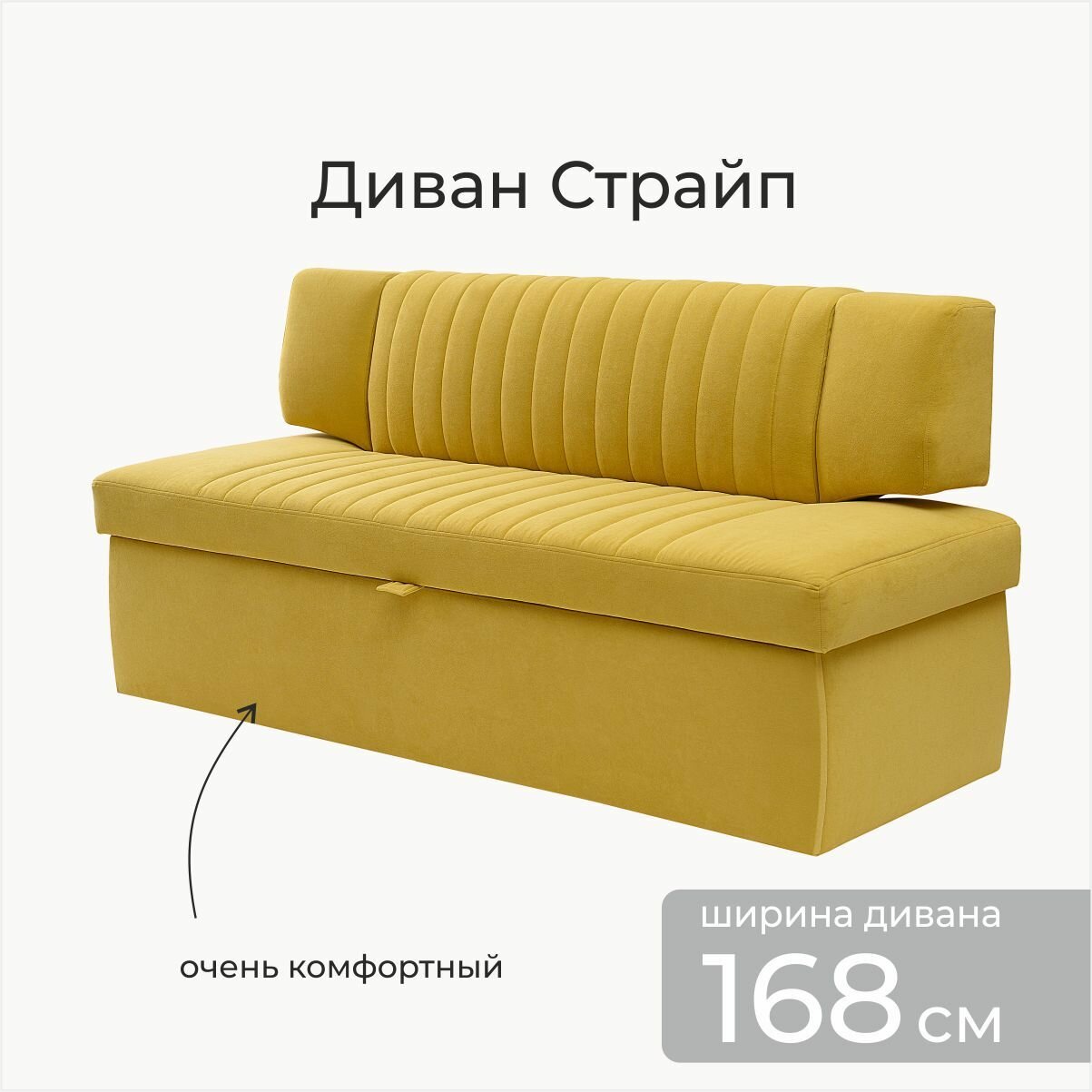 Кухонный раскладной диван Страйп 168х64х83 см. Мелисса 14, прямой диван со спальным местом, Жёлтый, Велюр