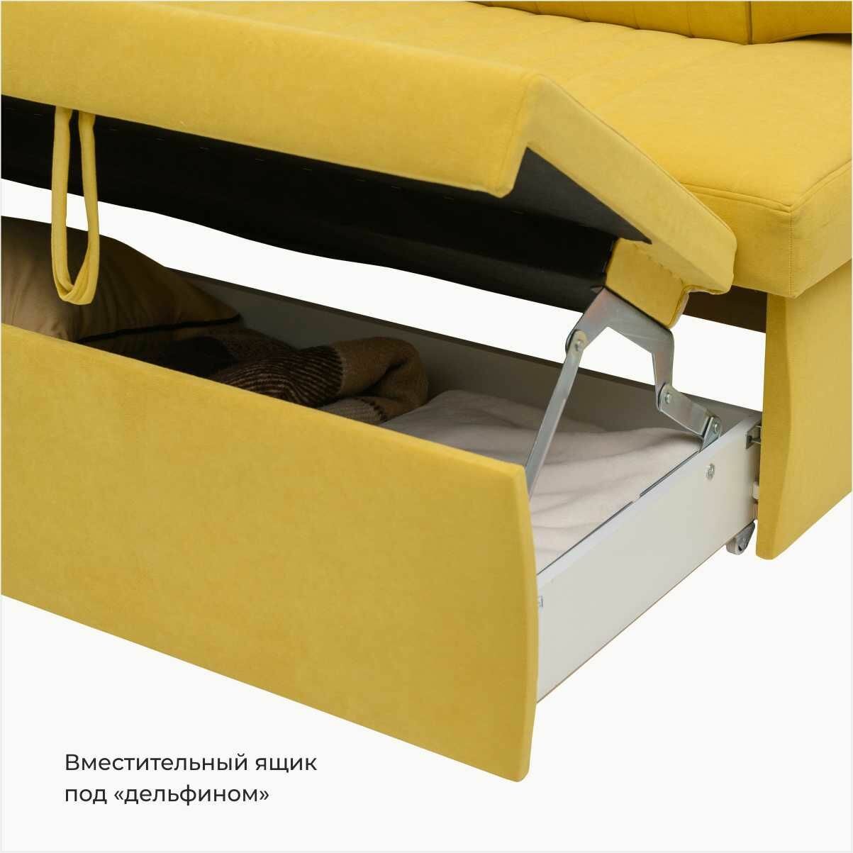 Страйп 183х64х83 см. Мелисса 14, прямой раскладной диван со спальным местом. Жёлтый, Велюр, для дома и офиса