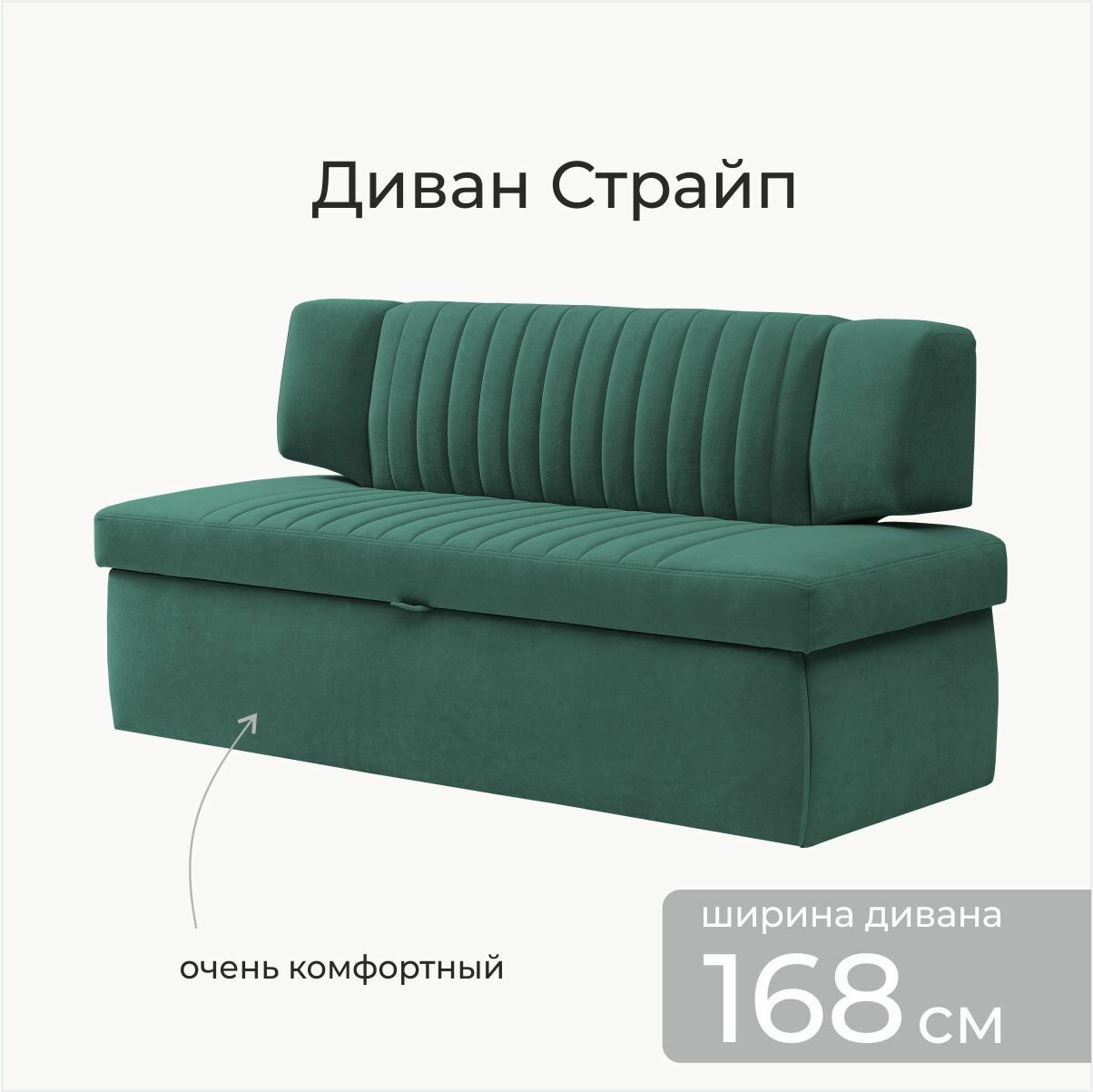 Кухонный раскладной диван Страйп 168х64х83 см. Мелисса 39, прямой диван со спальным местом, Темно-Зеленый, Велюр
