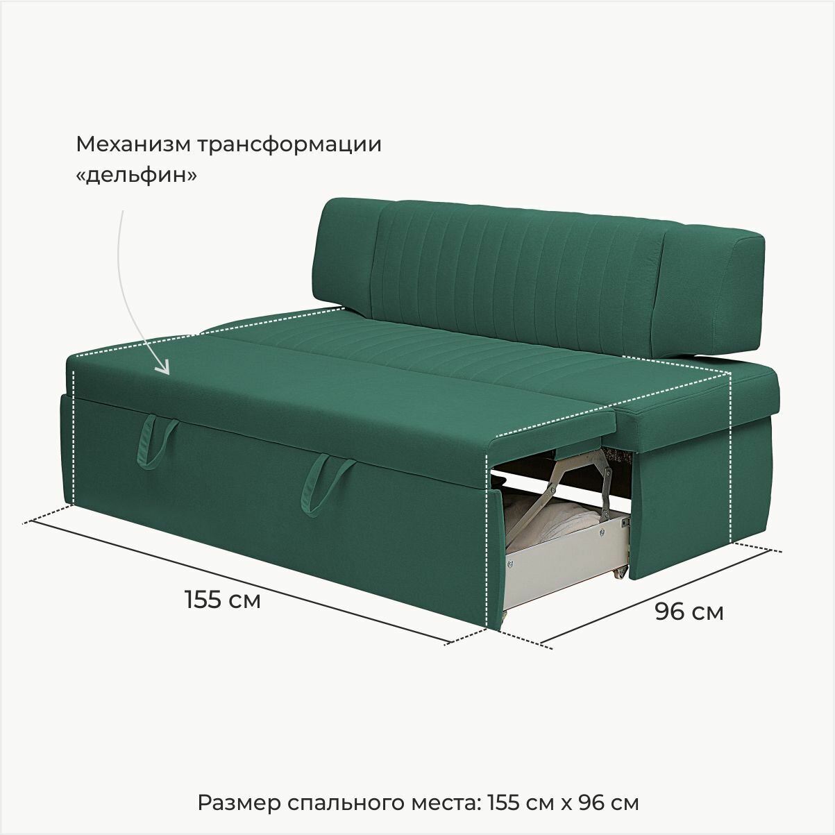 Кухонный раскладной диван Страйп 183х64х83 см. Мелисса 39, прямой диван со спальным местом, Темно-Зеленый, Велюр