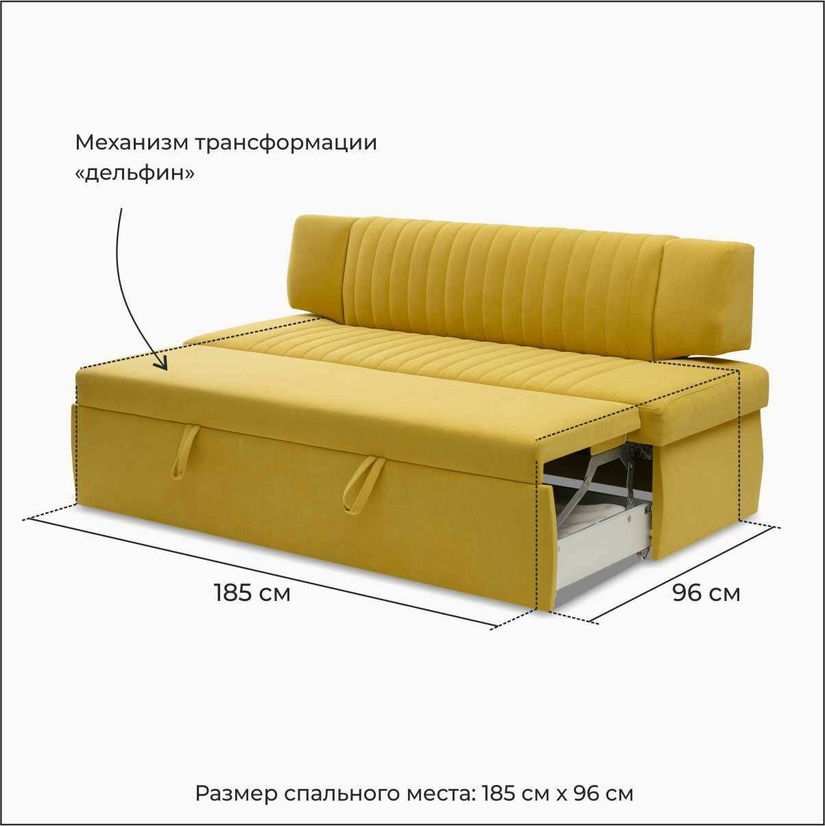 Страйп 183х64х83 см. Мелисса 14, прямой раскладной диван со спальным местом. Жёлтый, Велюр, для дома и офиса