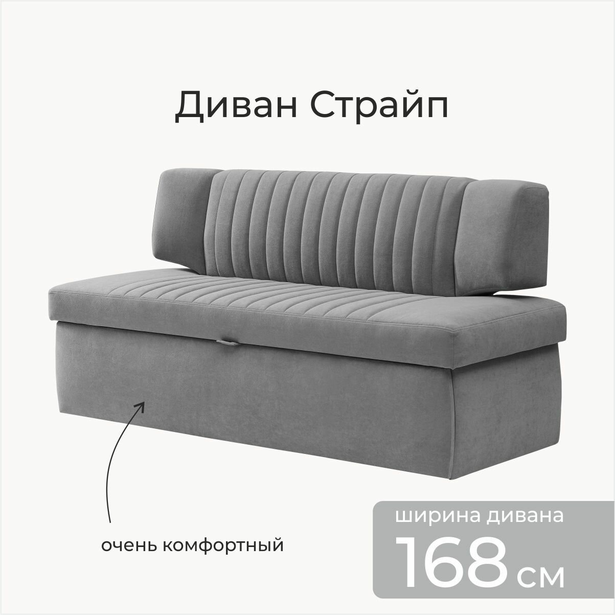 Кухонный раскладной диван Страйп 168х64х83 см. Мелисса 34, Серый, прямой диван со спальным местом, Велюр