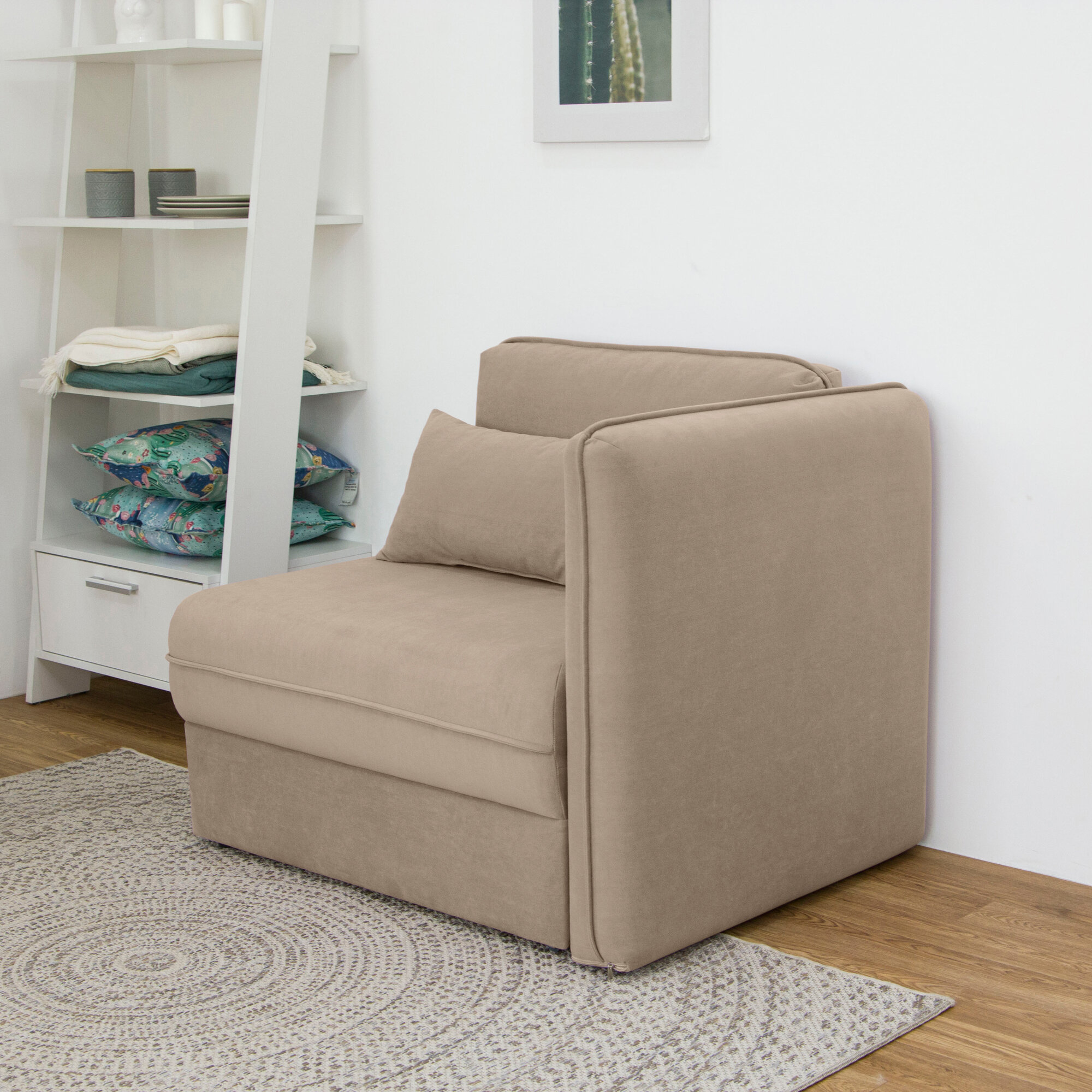 Диван-кровать KRASDIVAN Олаф 80х100 см, с ящиком для белья, велюр Бахрия 3 бежевый
