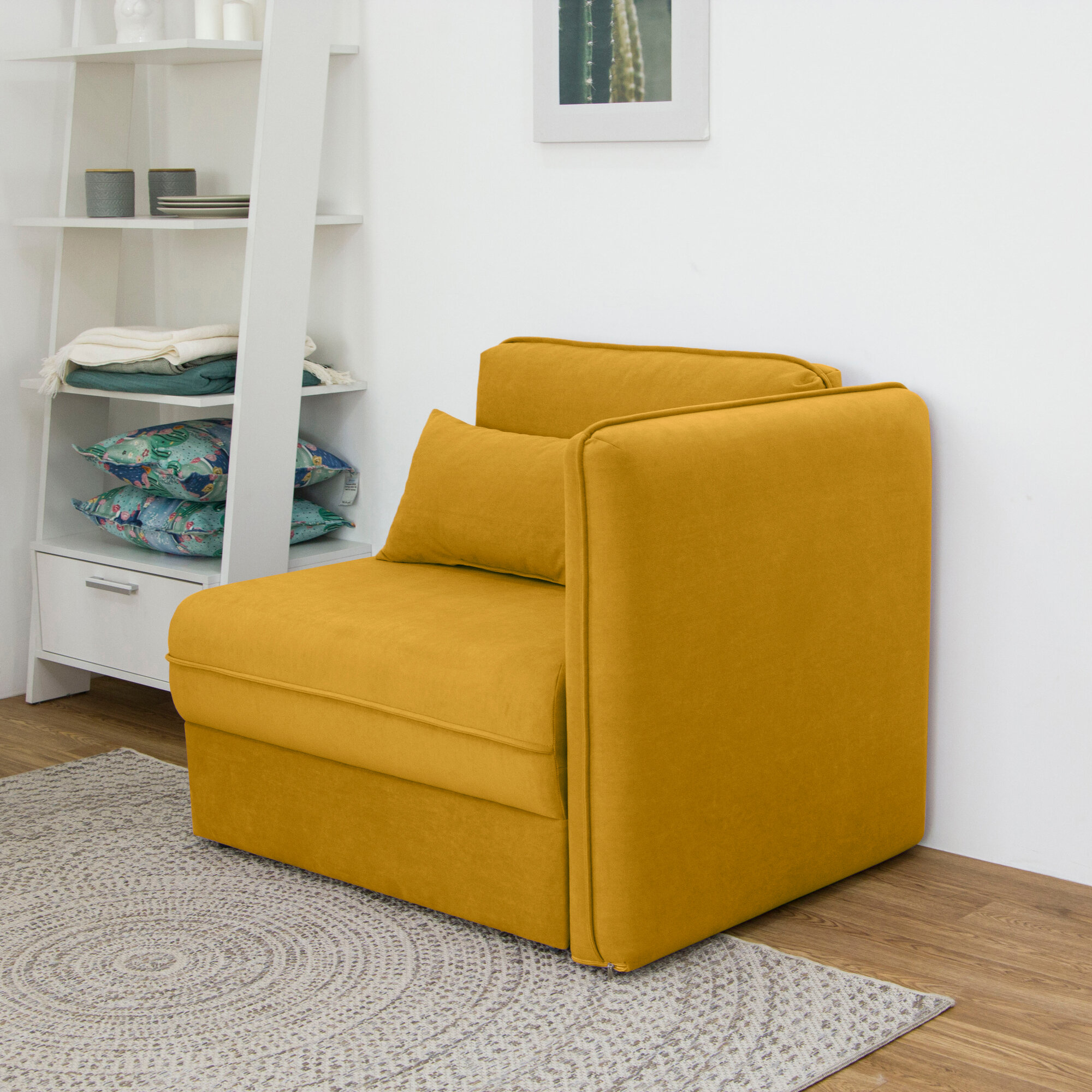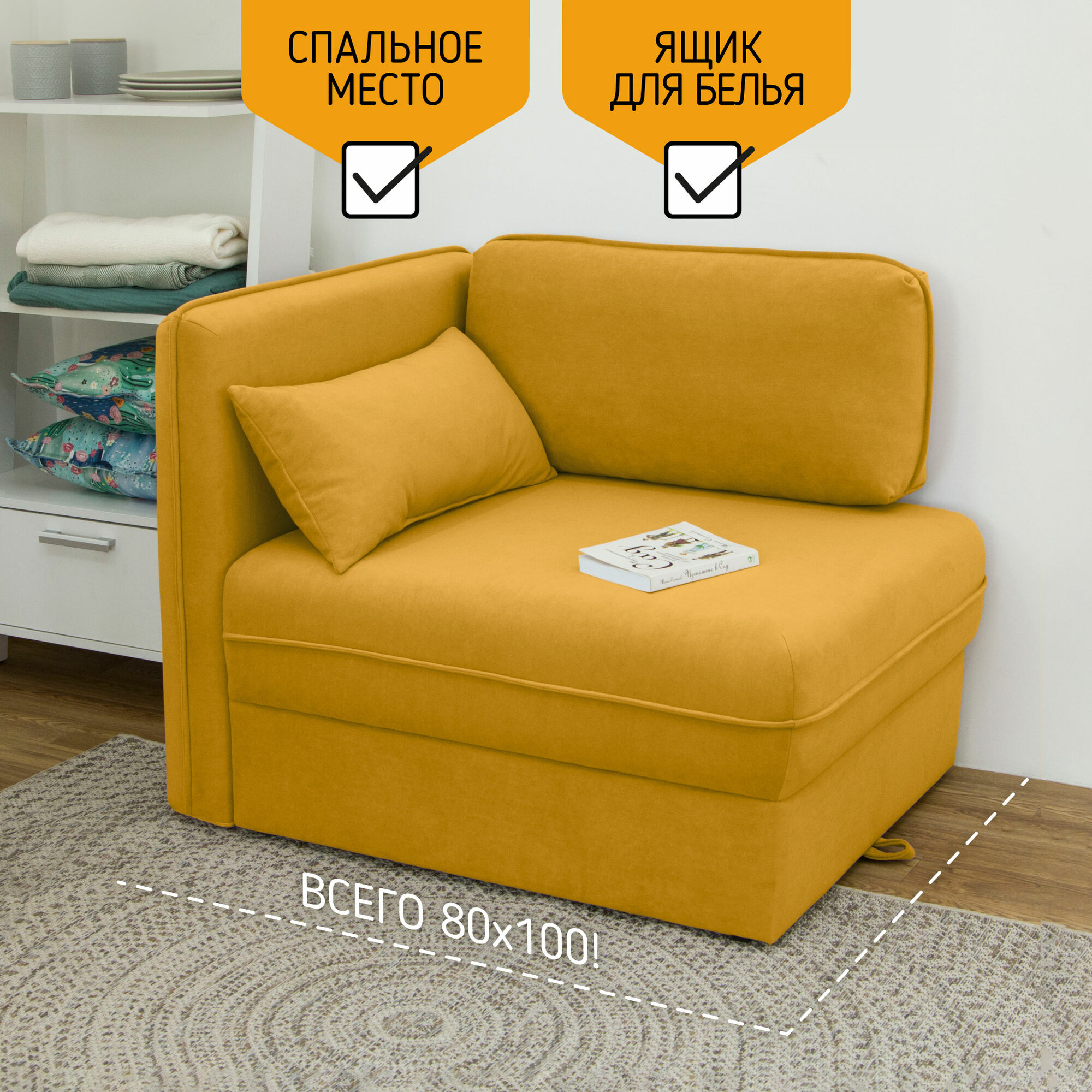 Купить Диван-кровать KRASDIVAN Олаф 80х100 см, с ящиком для белья, велюр Бахрия 42 желтый