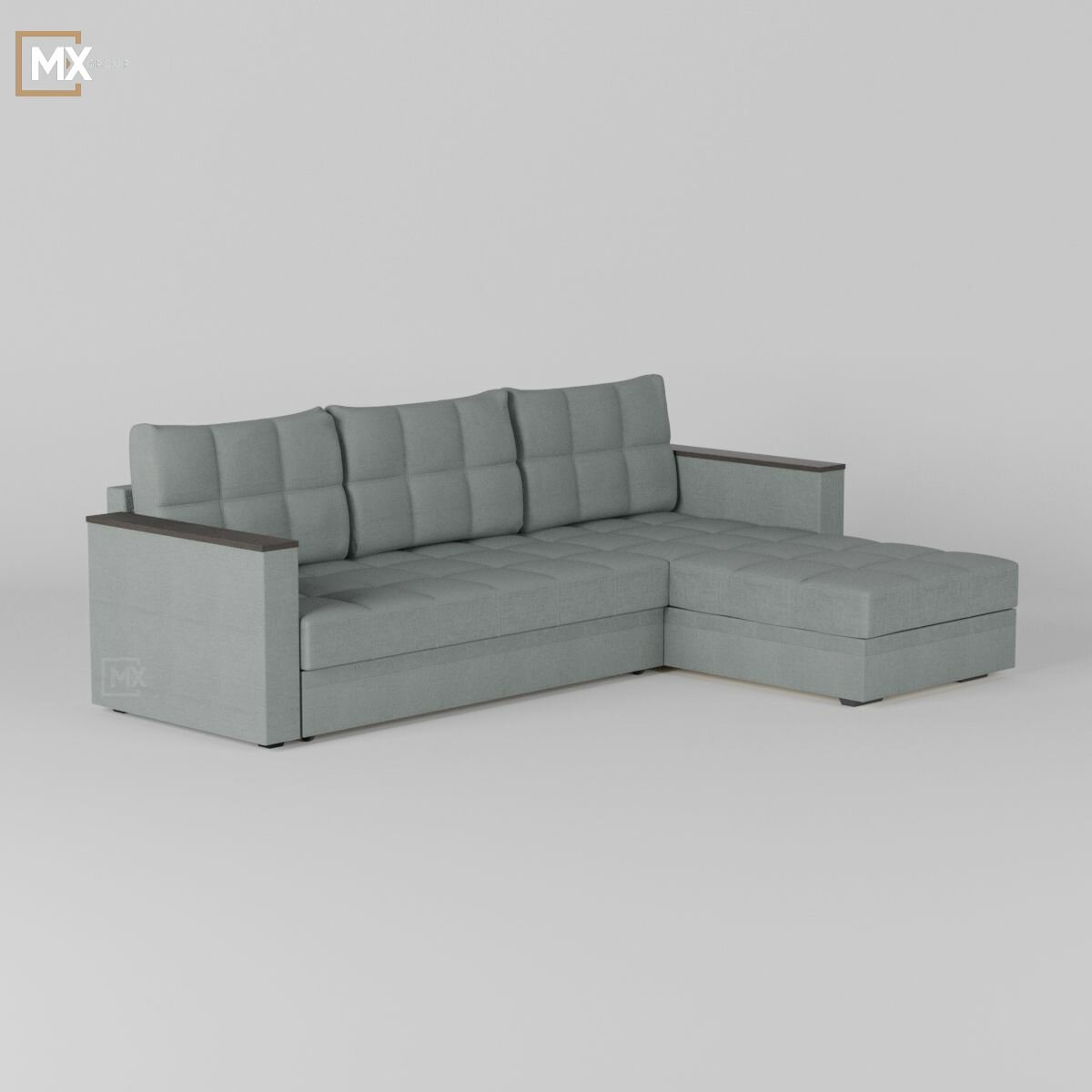 Диван угловой "Атлант", серый Capri 28, ЛДСП/ППУ/Рогожка для гостиной, спальни 2300х1600х750, 21 ВЕК+