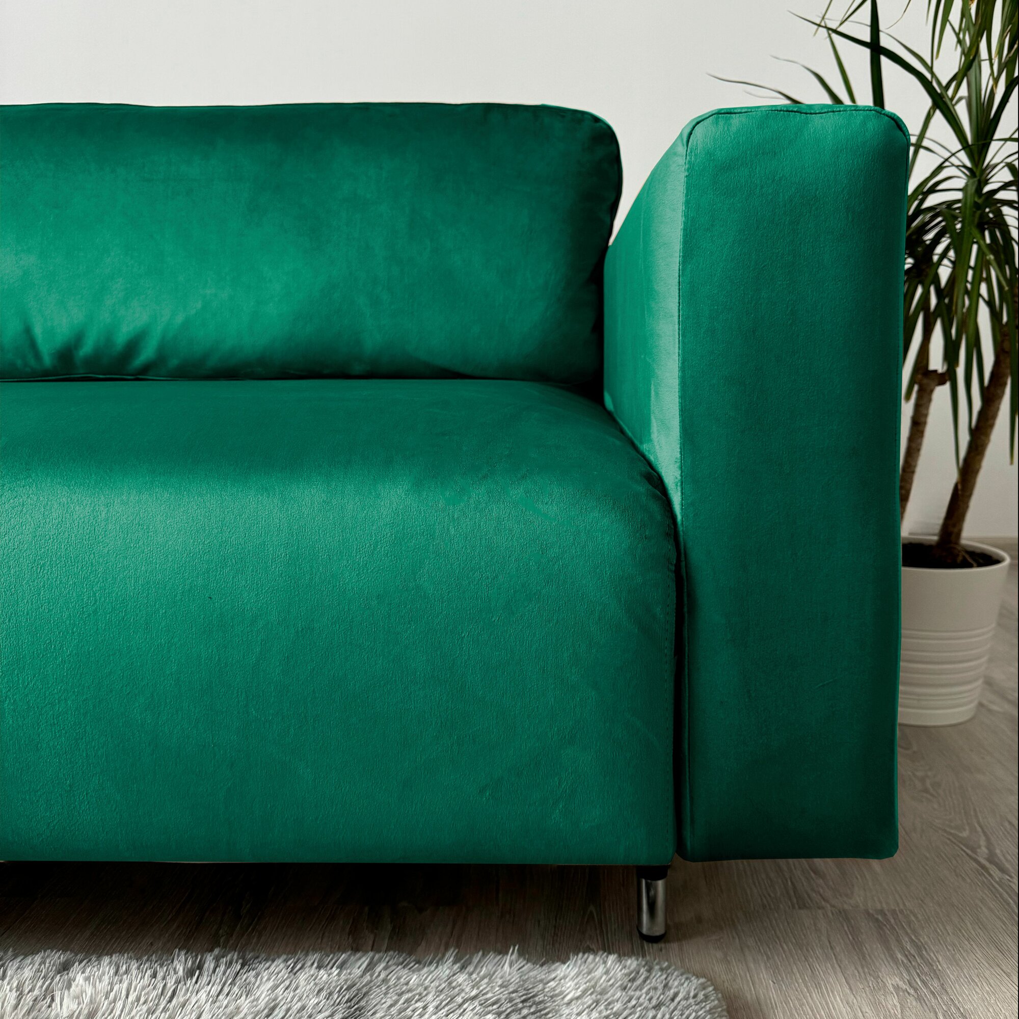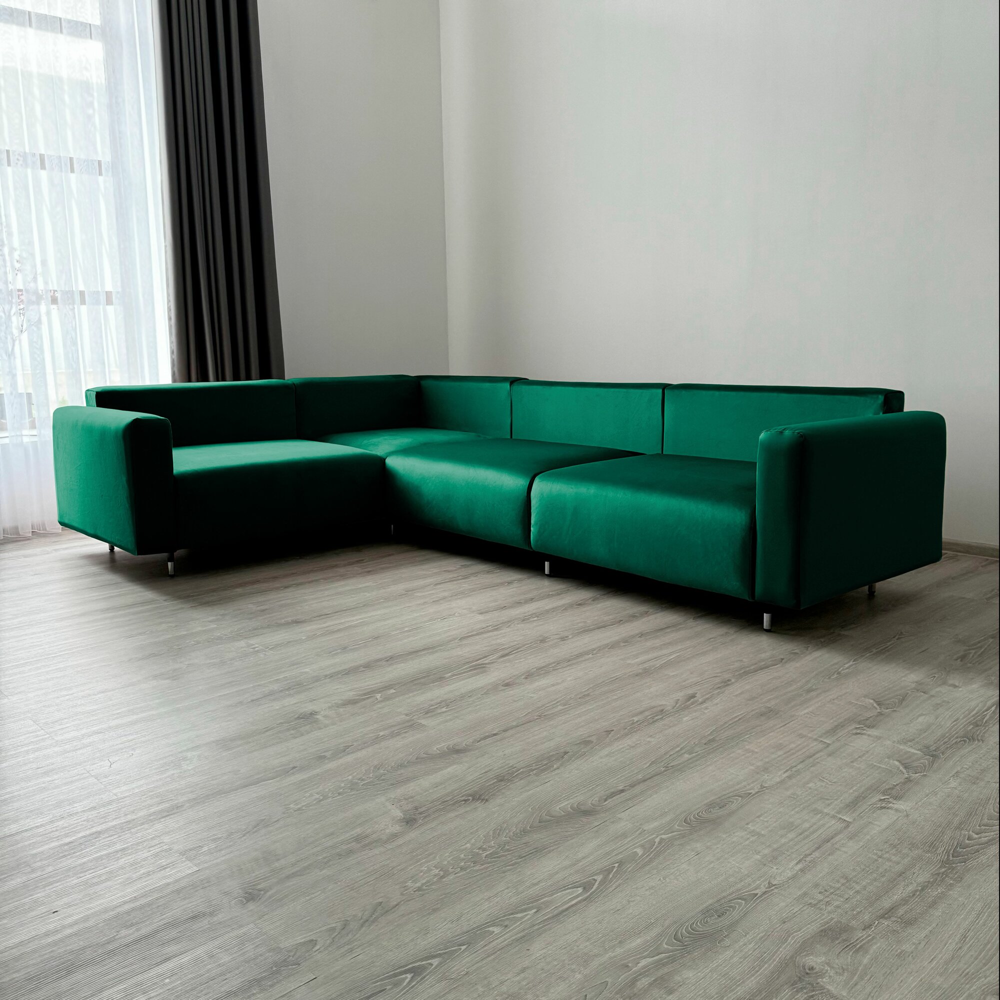 Купить Угловой диван-кровать Redsofa Монблан 310см изумрудный антивандальный. Раскладной диван со съемными чехлами Редсофа, для дома и офиса