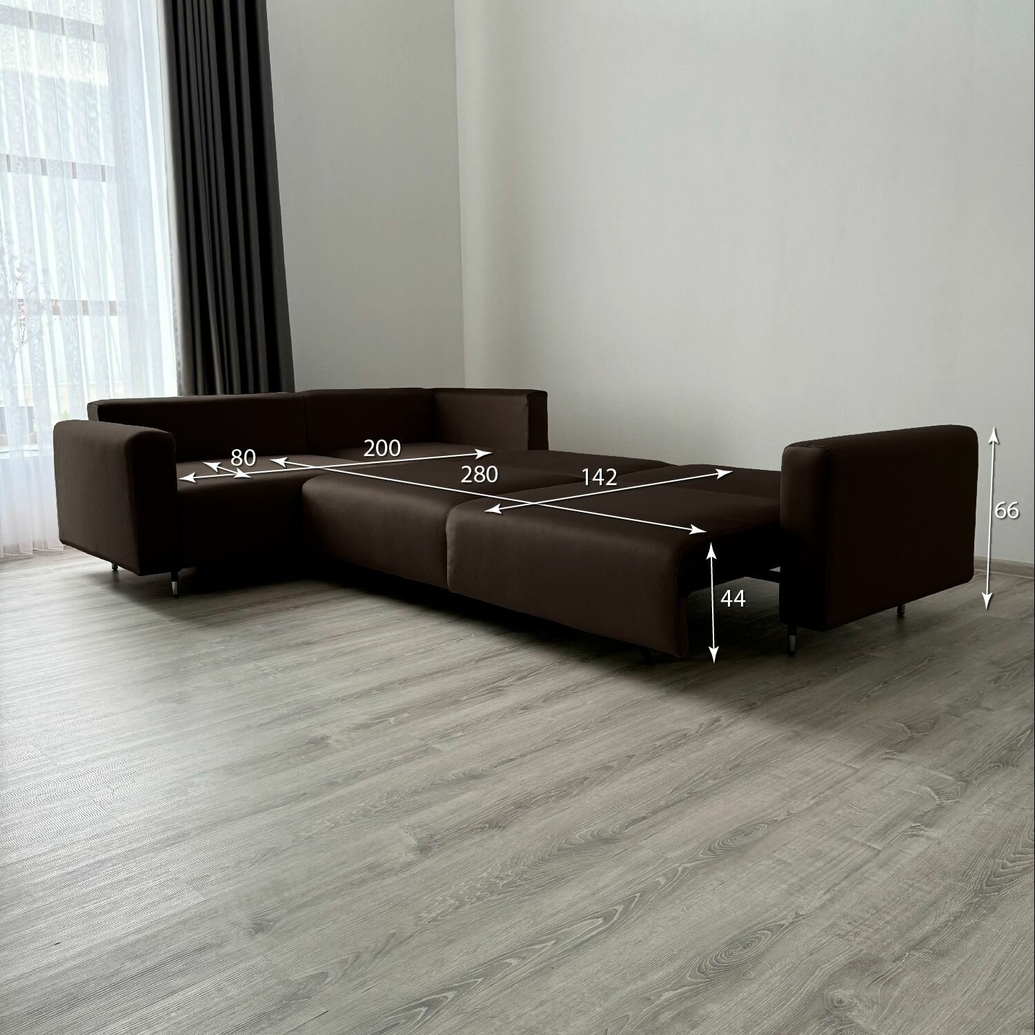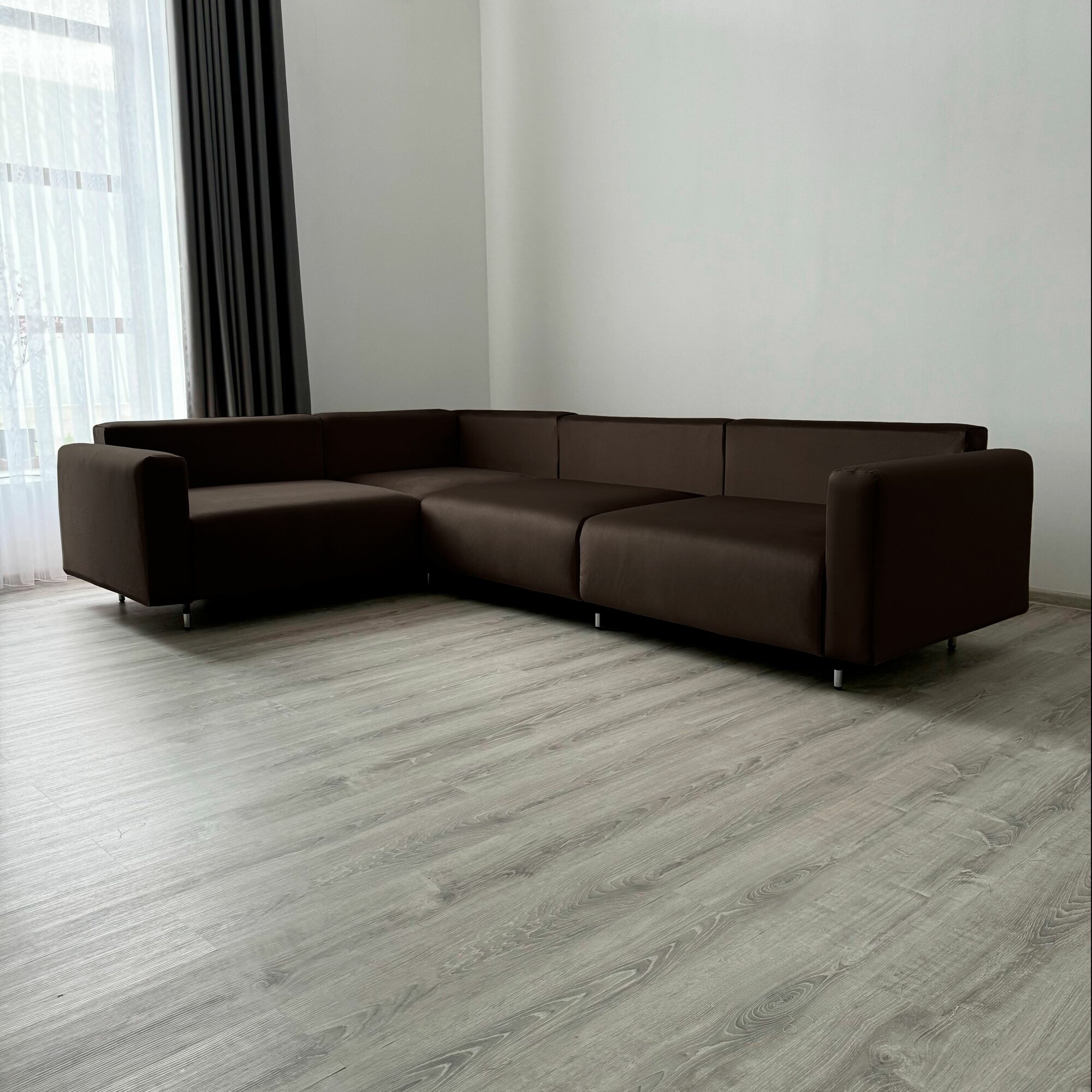 Угловой диван-кровать Redsofa Монблан 310см темно-коричневый Teddi. Раскладной диван со съемными чехлами Редсофа, для дома и офиса