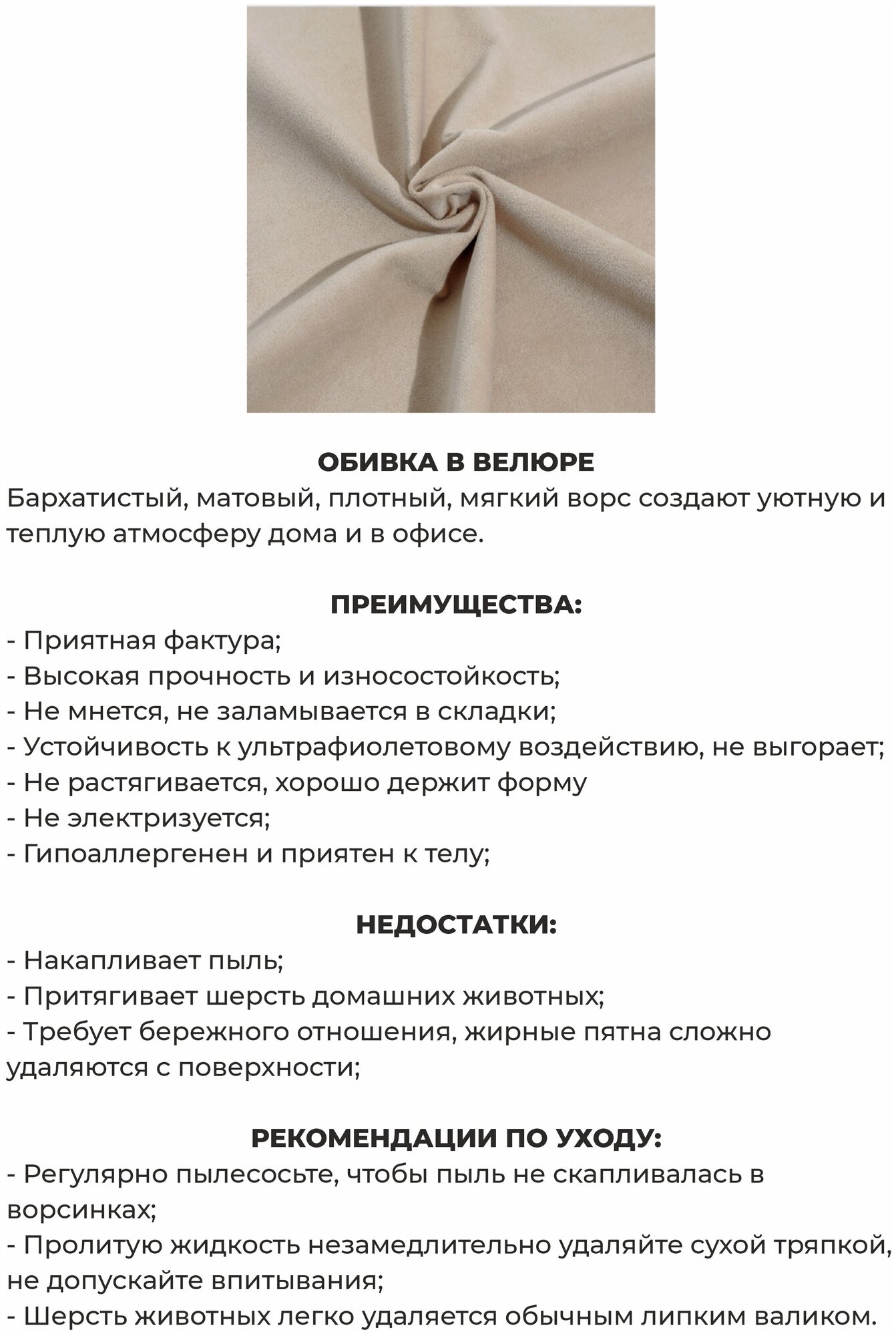 | Материал обивки | велюр, текстиль |
