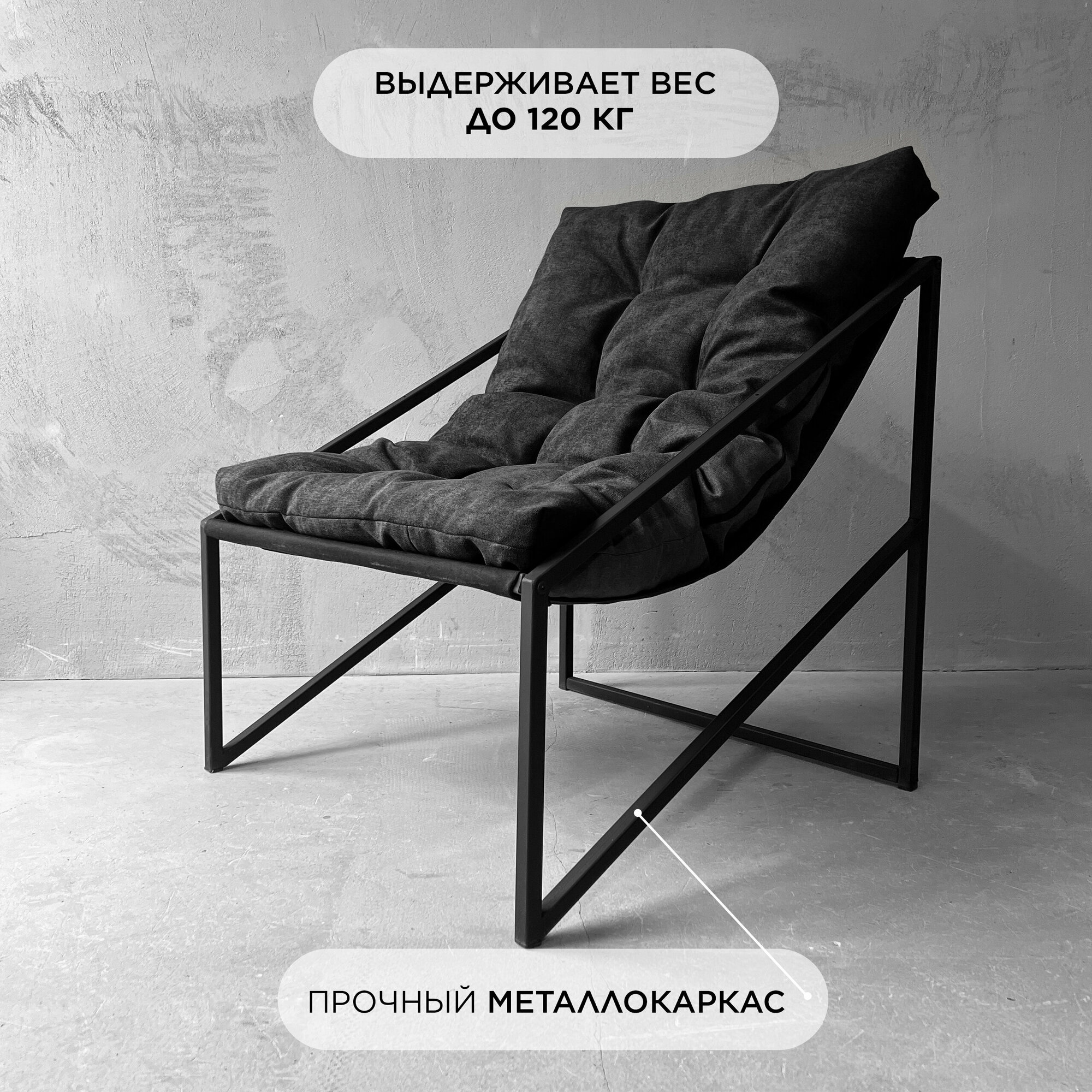 Купить Кресло лофт для дома "Лофтовик+ Слэш Black" велюр